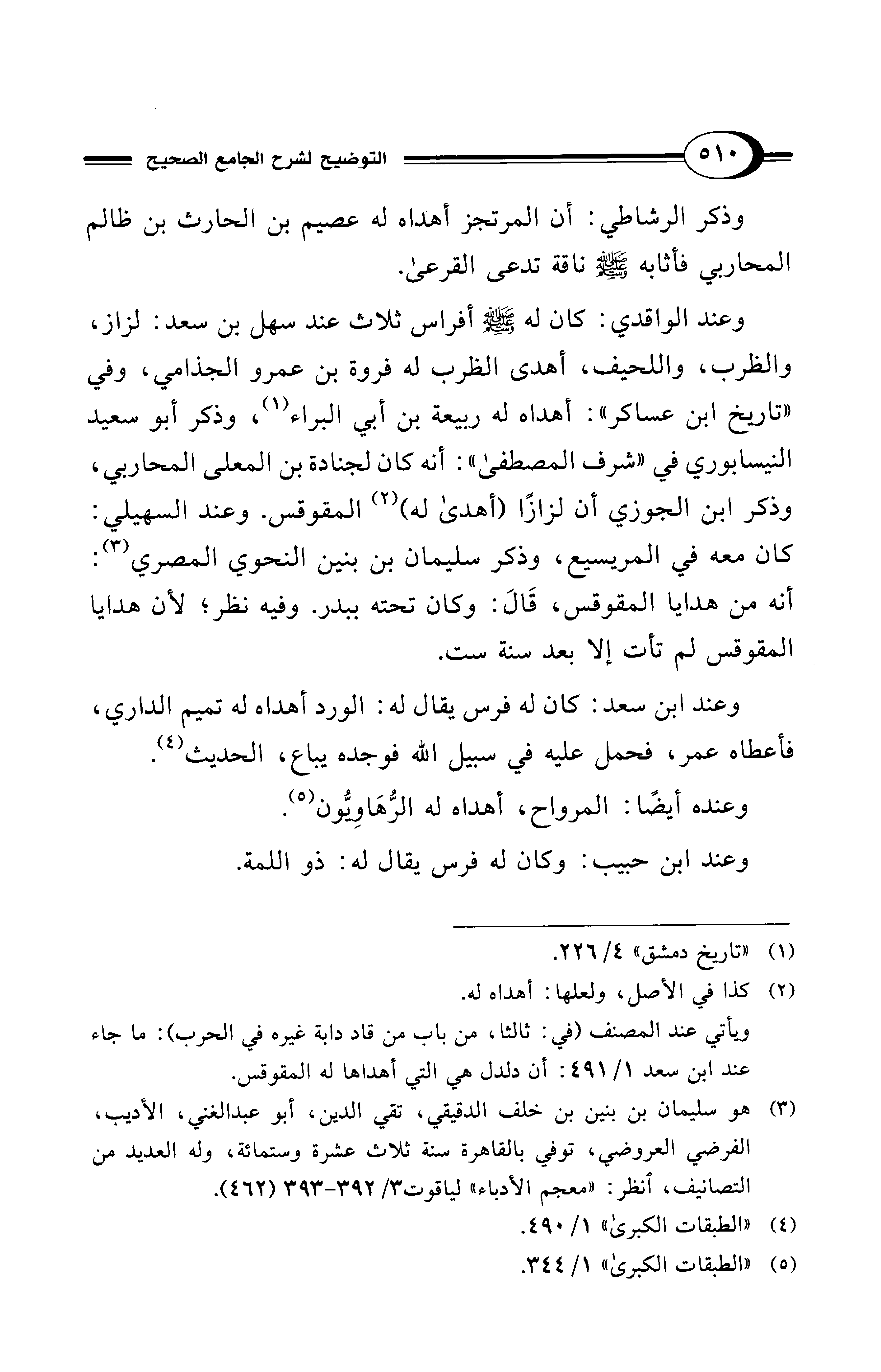 ويأتي عند المصنف (في: ثالثا، من باب من قاد دابة غيره في الحرب): ما جاء عند ابن سعد 1/ 491: أن دلدل هي التي أهداها له المقوقس.