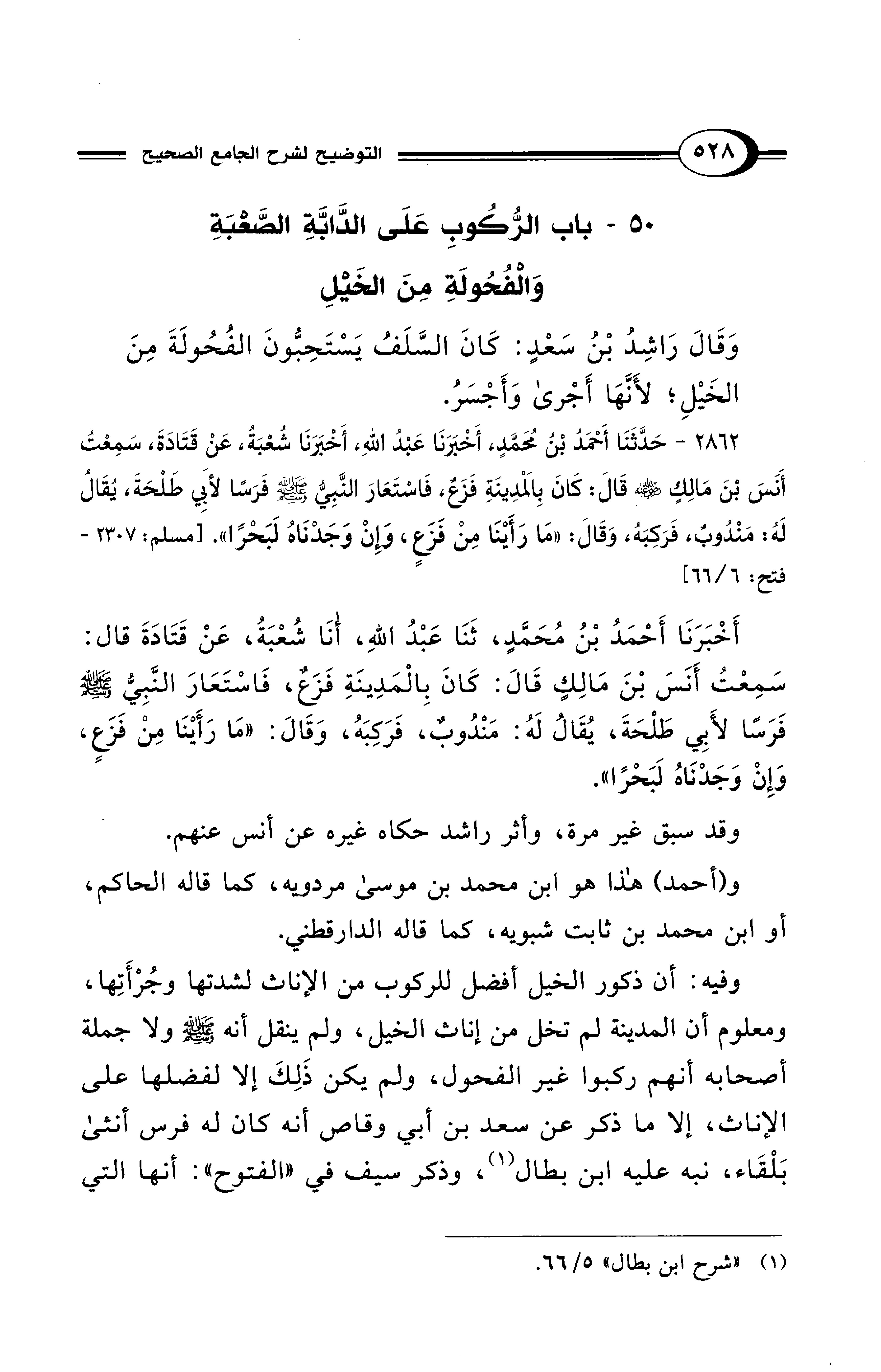 50 - باب الرُّكُوبِ عَلَى الدَّابَّةِ الصَّعْبَةِ وَالْفُحُولَةِ مِنَ الخَيْلِ
