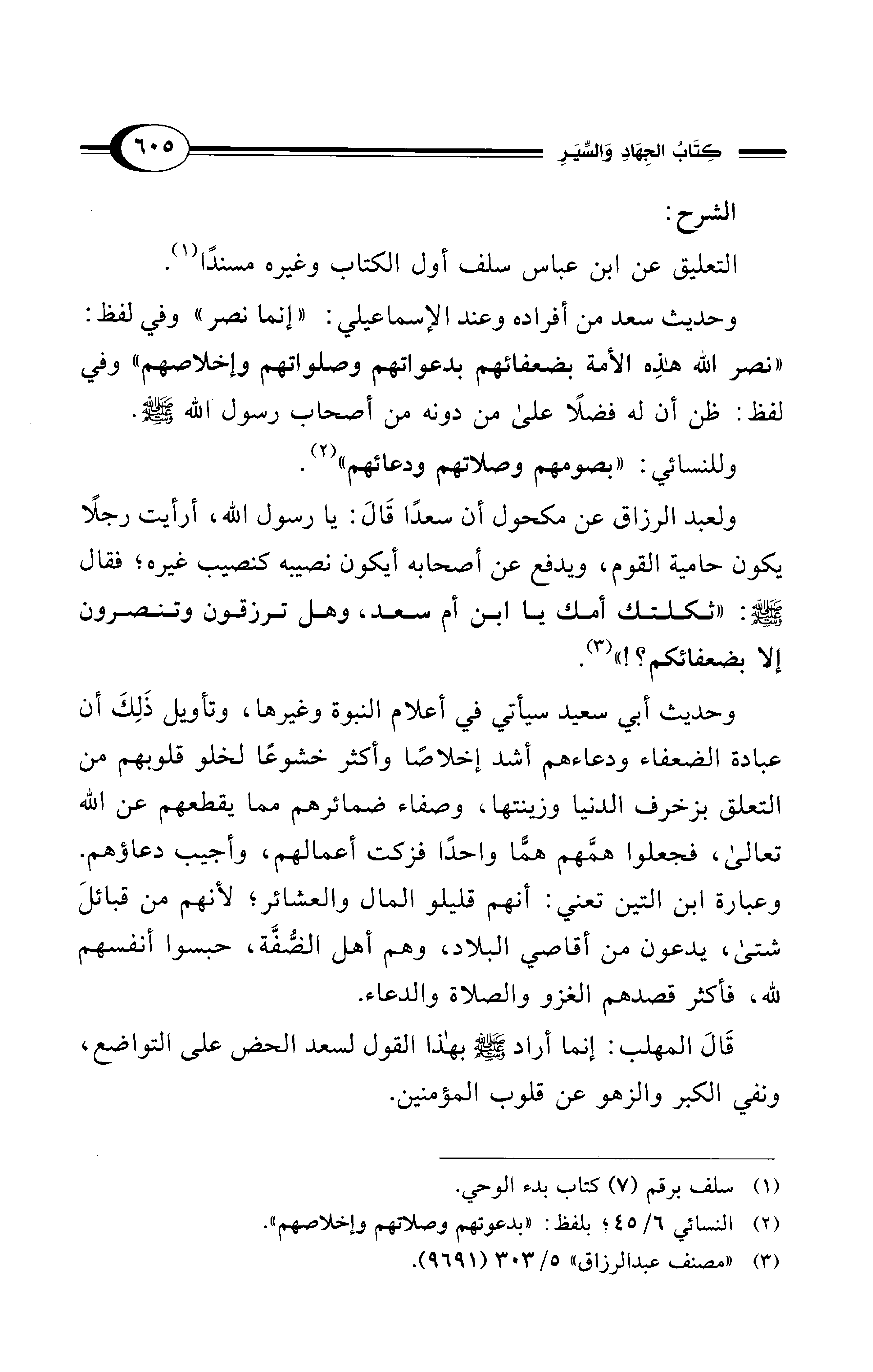 وحديث سعد من أفراده وعند الإسماعيلي: "إنما نصر" وفي لفظ: "نصر الله هذِه الأمة بضعفائهم بدعواتهم وصلواتهم وإخلاصهم" وفي لفظ: ظن أن له فضلاً على من دونه من أصحاب رسول الله - صلى الله عليه وسلم -.