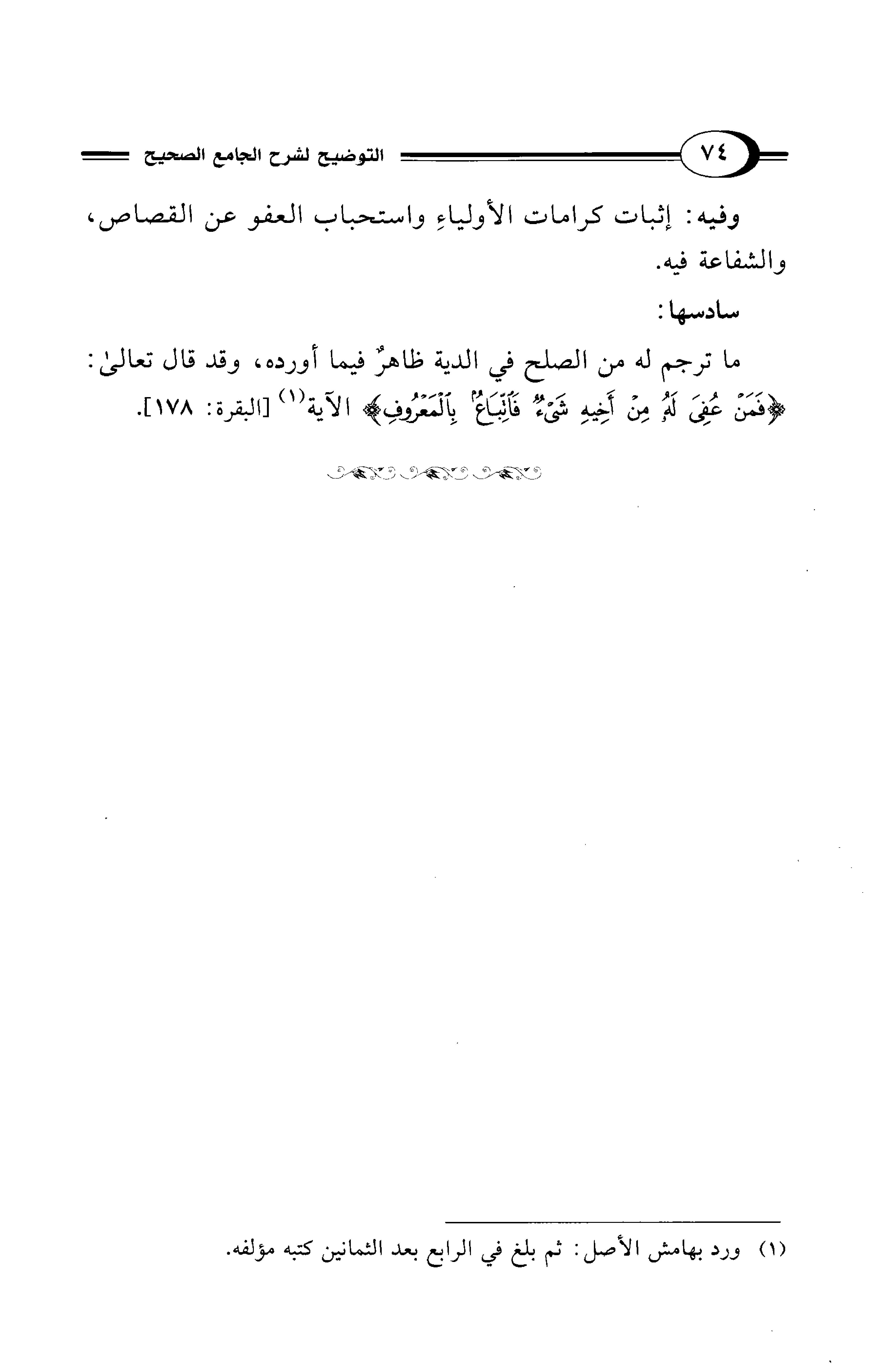 ما ترجم له من الصلح في الدية ظاهرٌ فيما أورده، وقد قال تعالى: {فَمَنْ عُفِيَ لَهُ مِنْ أَخِيهِ شَيْءٌ فَاتِّبَاعٌ بِالمَعْرُوفِ} الآية (¬1) [البقرة: 178].