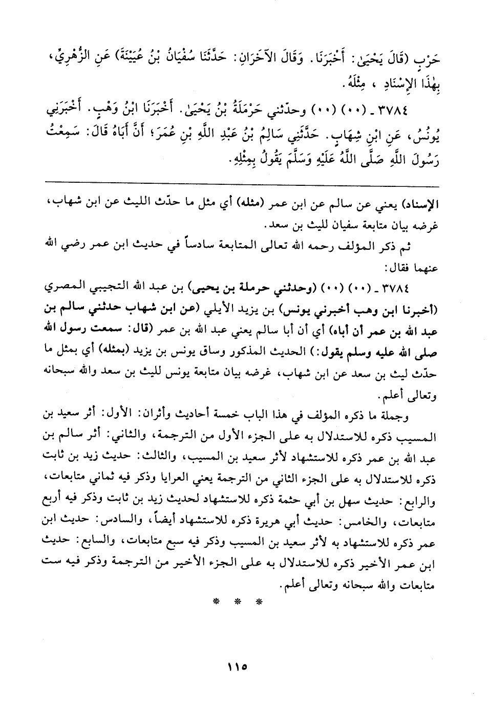 ٣٧٨٤ - (٠٠) (٠٠) وحدَّثني حَرْمَلَةُ بْنُ يَحْيَى. أَخْبَرَنَا ابْنُ وَهْبٍ. أَخْبَرَنِي يُونُسُ، عَنِ ابْنِ شِهَابٍ. حَدَّثَنِي سَالِمُ بْنُ عَبْدِ اللهِ بْنِ عُمَرَ؛ أَنَّ أَبَاهُ قَال: سَمِعْتُ رَسُولَ اللهِ صَلَّى اللهُ عَلَيهِ وَسَلَّمَ يَقُولُ بِمِثْلِهِ