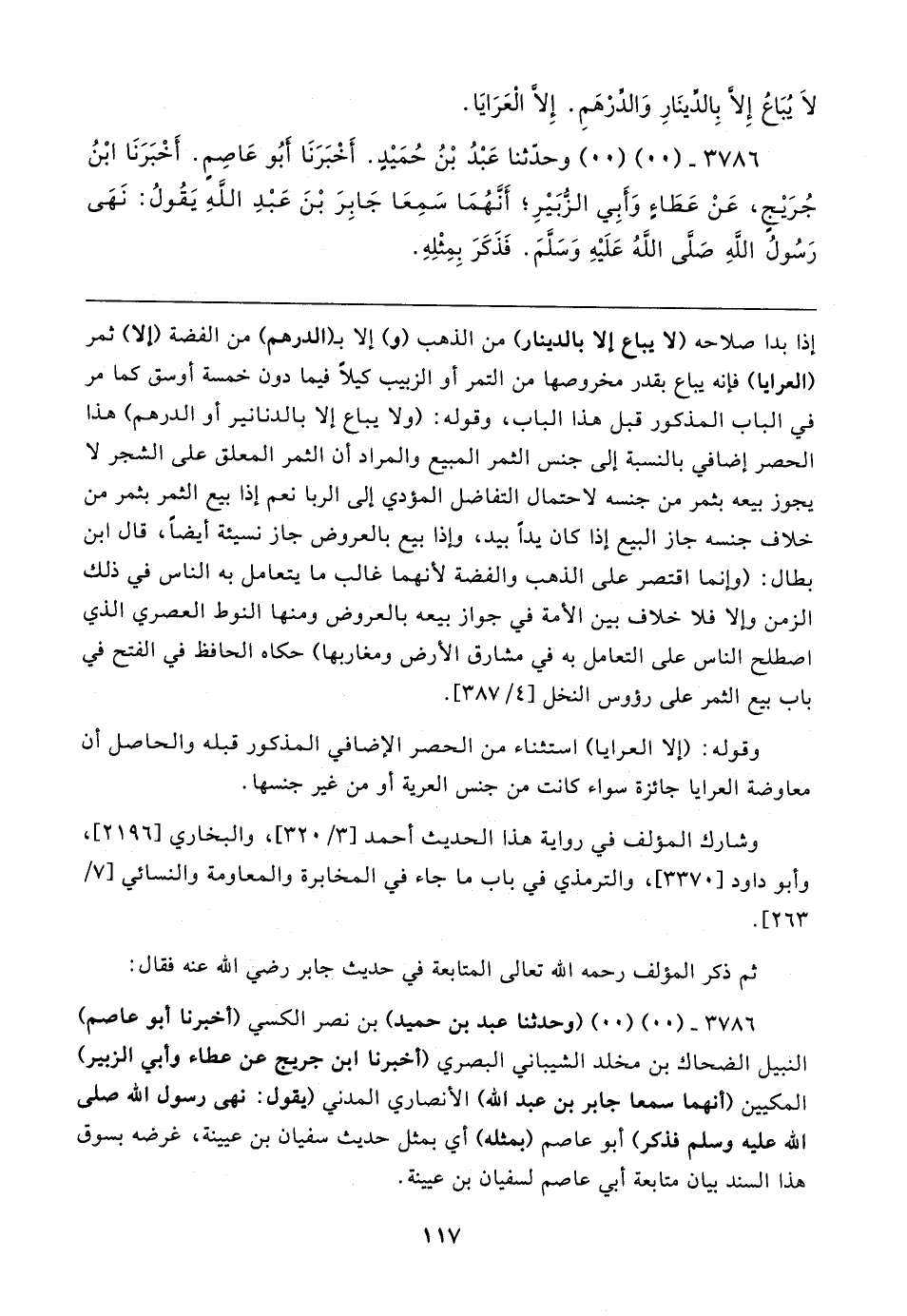 ٣٧٨٦ - (٠٠) (٠٠) (وحدثنا عبد بن حميد) بن نصر الكسي (أخبرنا أبو عاصم) النبيل الضحاك بن مخلد الشيباني البصري (أخبرنا ابن جريج عن عطاء وأبي الزبير) المكيين (أنهما سمعا جابر بن عبد الله) الأنصاري المدني (يقول: نهى رسول الله صلى الله عليه وسلم فذكر) أبو عاصم (بمثله) أي بمثل حديث سفيان بن عيينة، غرضه بسوق هذا السند بيان متابعة أبي عاصم لسفيان بن عيينة.
