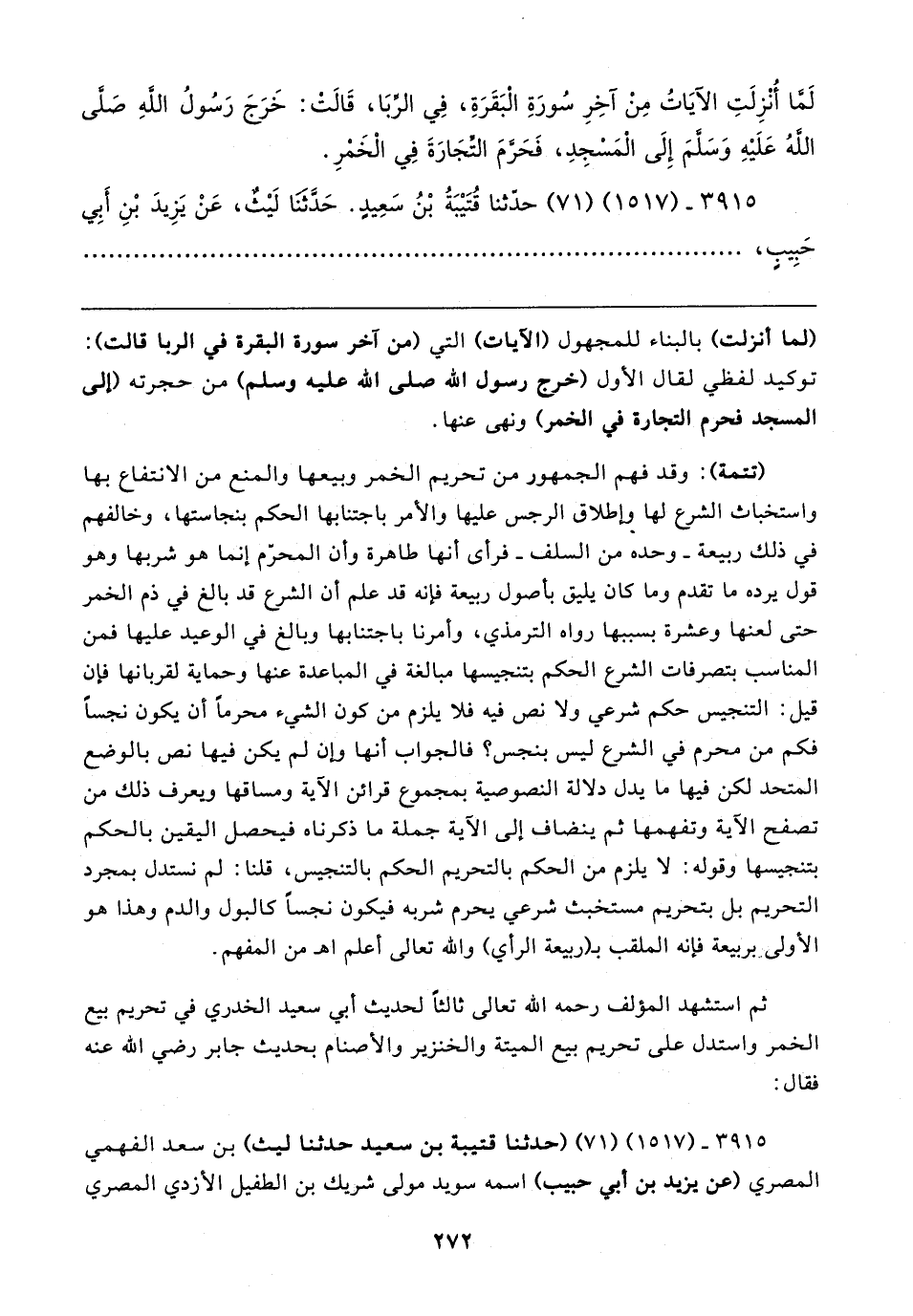 ٣٩١٥ - (١٥١٧) (٧١) (حَدَّثَنَا قتيبة بن سعيد حَدَّثَنَا ليث) بن سعد الفهمي المصري (عن يزيد بن أبي حبيب) اسمه سويد مولى شريك بن الطفيل الأَزدِيّ المصري