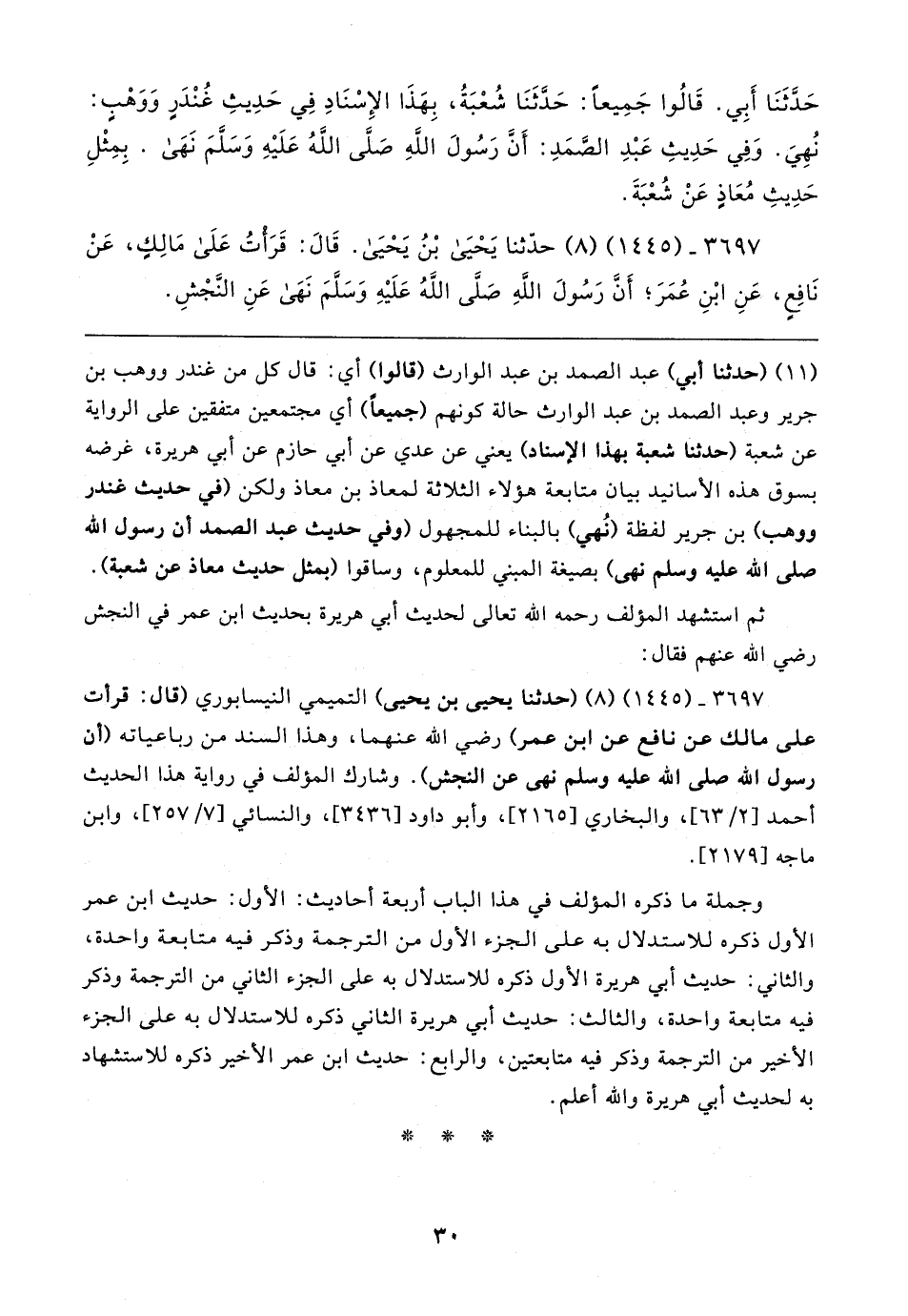 (١١) (حدثنا أبي) عبد الصمد بن عبد الوارث (قالوا) أي: قال كل من غندر ووهب بن جرير وعبد الصمد بن عبد الوارث حالة كونهم (جميعًا) أي مجتمعين متفقين على الرواية عن شعبة (حدثنا شعبة بهذا الإسناد) يعني عن عدي عن أبي حازم عن أبي هريرة، غرضه بسوق هذه الأسانيد بيان متابعة هؤلاء الثلاثة لمعاذ بن معاذ ولكن (في حديث غندر ووهب) بن جرير لفظة (نُهي) بالبناء للمجهول (وفي حديث عبد الصمد أن رسول الله صلى الله عليه وسأنهى) بصيغة المبني للمعلوم، وساقوا (بمثل حديث معاذ عن شعبة).