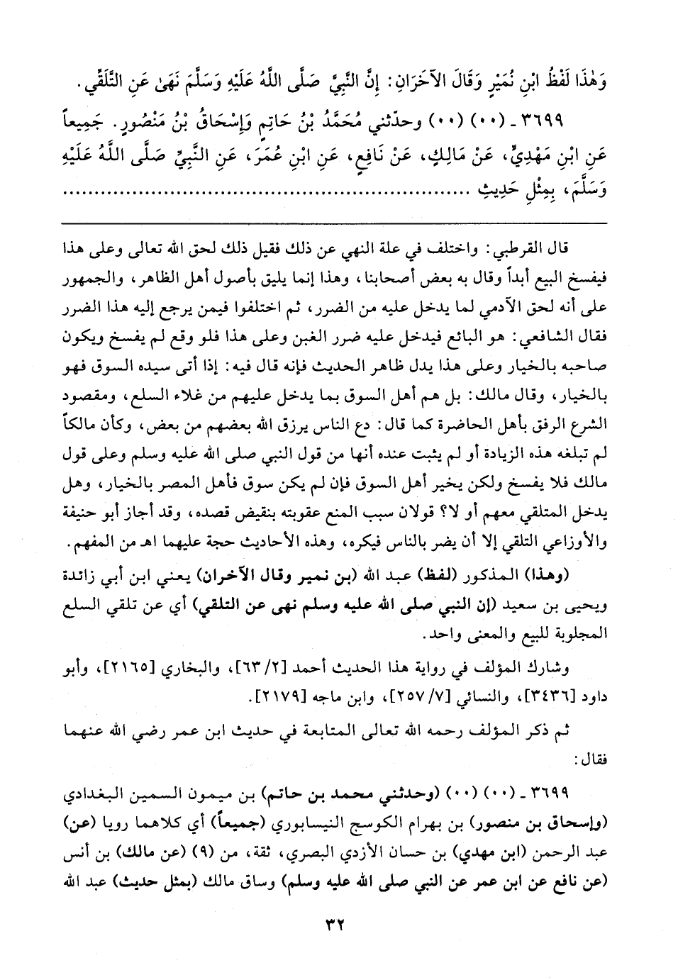 وَهذَا لَفْظُ ابْنِ نُمَيرٍ وَقَال الآخَرَانِ: إِنَّ النَّبِيَّ صَلَّى اللهُ عَلَيهِ وَسَلَّمَ نَهَى عَنِ التَّلَقِّي.