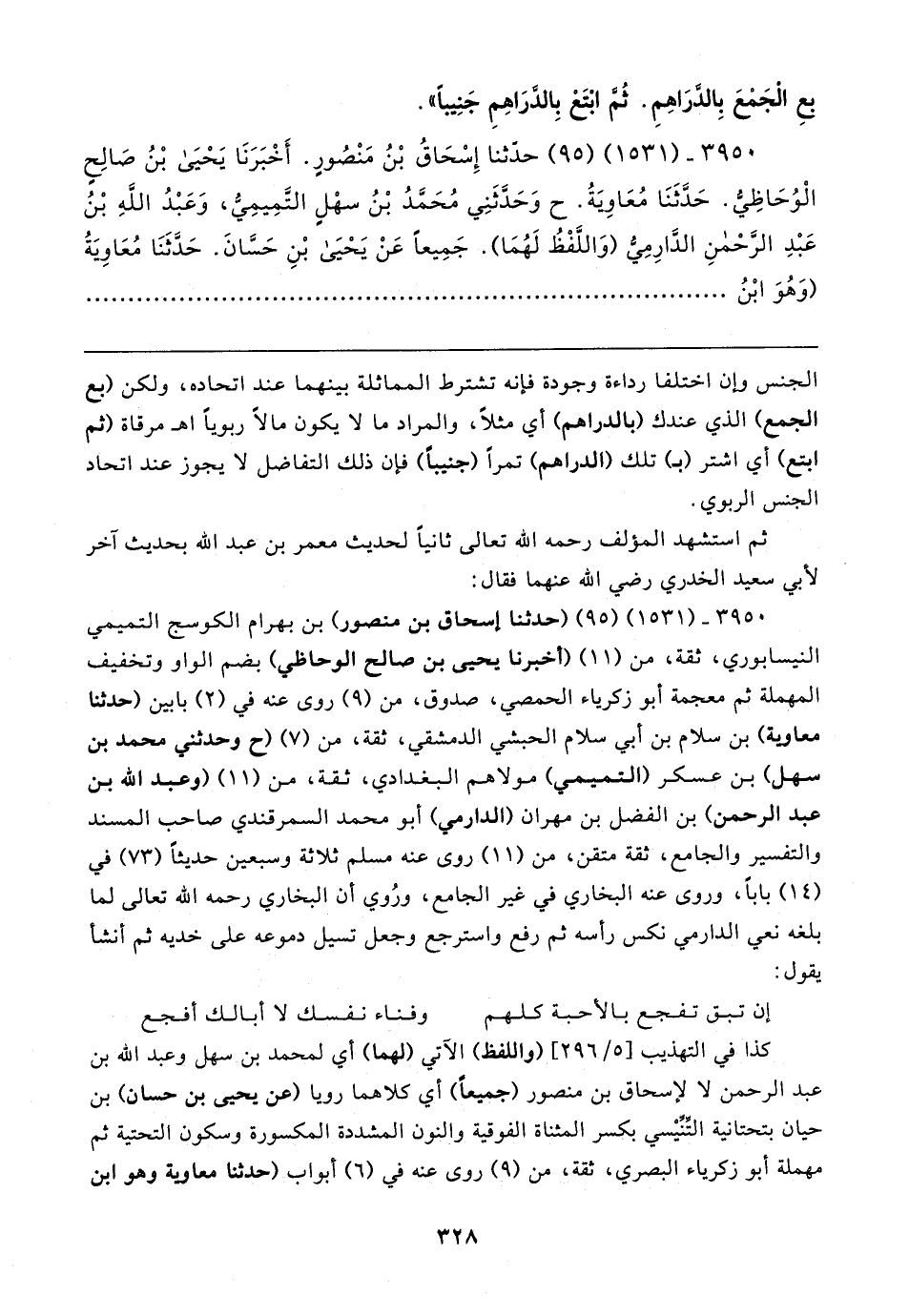 ٣٩٥٠ - (١٥٣١) (٩٥) حدثنا إِسْحَاقُ بْنُ مَنْصُورٍ. أَخْبَرَنَا يَحْيَى بْنُ صَالِحٍ الْوُحَاظِيُّ. حَدَّثَنَا مُعَاويَةُ. ح وَحَدَّثَنِي مُحَمَّدُ بْنُ سهْلٍ التَّمِيمِيُّ، وَعَبْدُ اللهِ بْنُ عَبْدِ الرَّحْمنِ الدَّارِمِيُّ (وَاللَّفْظُ لَهُمَا). جَمِيعًا عَنْ يَحْيَى بْنِ حَسَّانَ. حَدَّثَنَا مُعَاويةُ (وَهُوَ ابْنُ