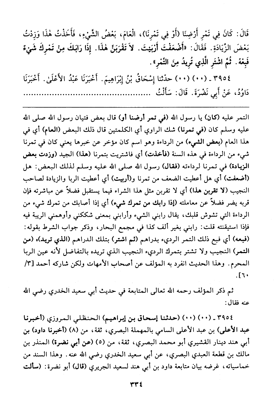 ٣٩٥٤ - (٠٠) (٠٠) (حدثنا إسحاق بن إبراهيم) الحنظلي المروزي (أخبرنا عبد الأعلى) بن عبد الأعلى السامي بالمهملة البصري، ثقة، من (٨) (أخبرنا داود) بن أبي هند دينار القشيري أبو محمَّد البصري، ثقة، من (٥) (عن أبو نضرة) المنذر بن مالك بن قطعة العبدي البصري، عن أبي سعيد الخدري رضي الله عنه. وهذا السند من خماسياته، غرضه بيان متابعة داود بن أبي هند لسعيد الجريري (قال) أبو نضرة: (سألت