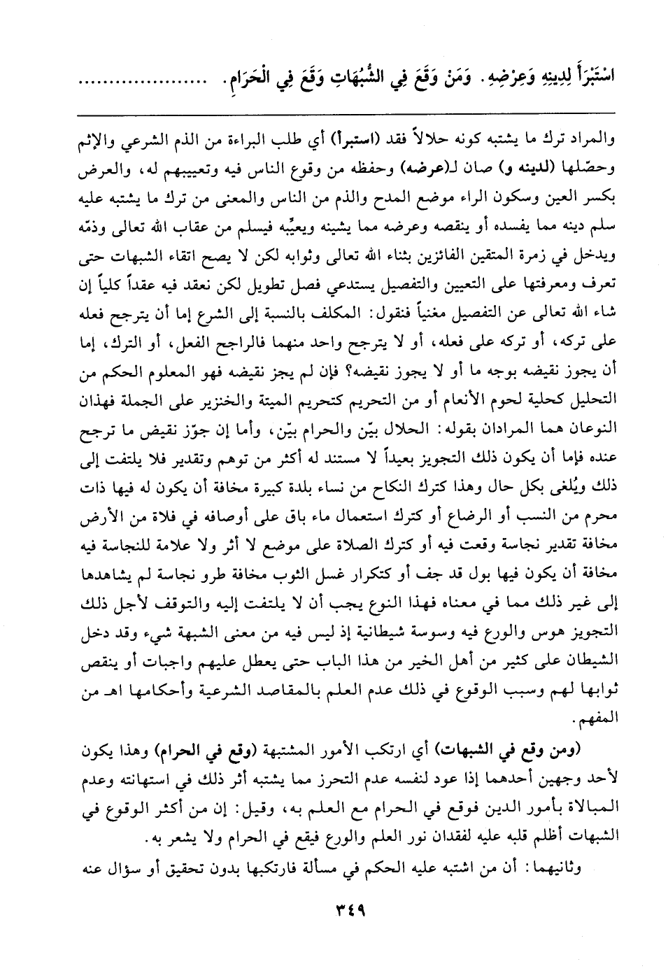 اسْتَبْرَأَ لِدِينِهِ وَعِرْضِهِ. وَمَنْ وَقَعَ في الشُّبُهَاتِ وَقَعَ في الْحَرَامِ