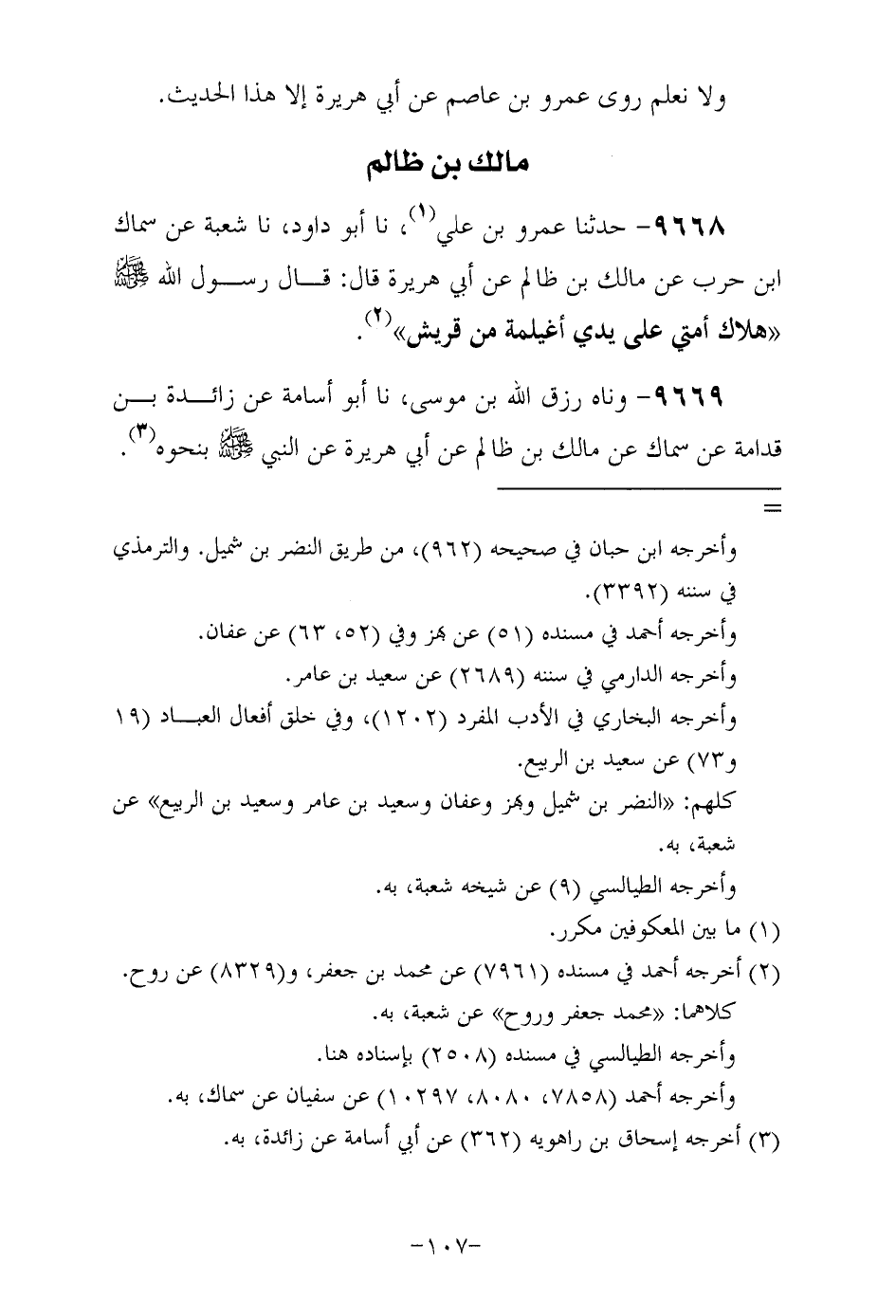 9669- وَحَدَّثَناه رزق الله بن موسى , حَدَّثَنا أبو أسامة , عن زائدة بن قدامة , عن سماك , عن مالك بن ظالم , عَنْ أَبِي هُرَيْرَةَ رَضِيَ اللهُ عَنْهُ , عَنِ النَّبِيِّ صَلَّى اللهُ عَلَيْهِ وَسَلَّمَ بِنَحْوِهِ.