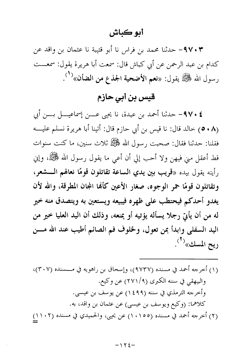 9705- وَحَدَّثَناه علي بن المنذر , حَدَّثَنا مُحَمَّد بن فضيل , حَدَّثَنا مجالد , عن قيس بن أبي حازم , عَنْ أَبِي هُرَيْرَةَ رَضِيَ اللهُ عَنْهُ , عَنِ النَّبِيِّ صَلَّى اللهُ عَلَيْهِ وَسَلَّمَ بِنَحْوِهِ.