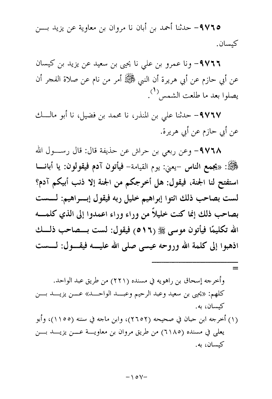 9765- حَدَّثَنا أَحْمَد بن أبان , حَدَّثَنا مروان بن معاوية , عن يَزِيد بن كيسان