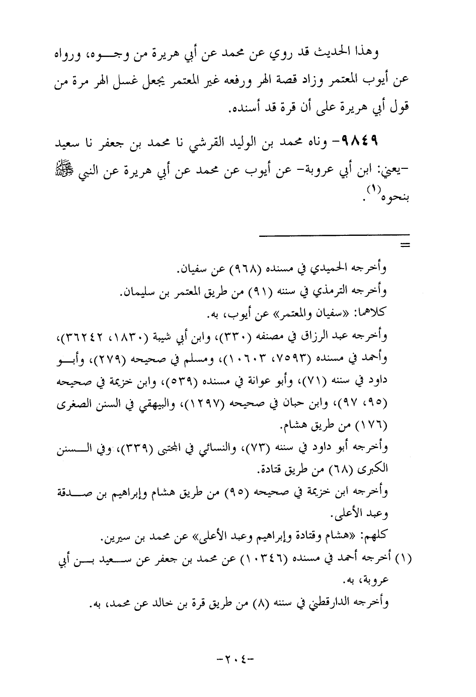 9849- وحَدَّثَناه محمد بن الوليد القرشي , حَدَّثَنا مُحَمَّد بن جعفر , حَدَّثَنا سعيد يعني ابن أبي عروبة , عن أيوب , عن مُحَمَّد , عَنْ أَبِي هُرَيْرَةَ رَضِيَ اللهُ عَنْهُ , عَنِ النَّبِيِّ صَلَّى اللهُ عَلَيْهِ وَسَلَّمَ بِنَحْوِهِ.