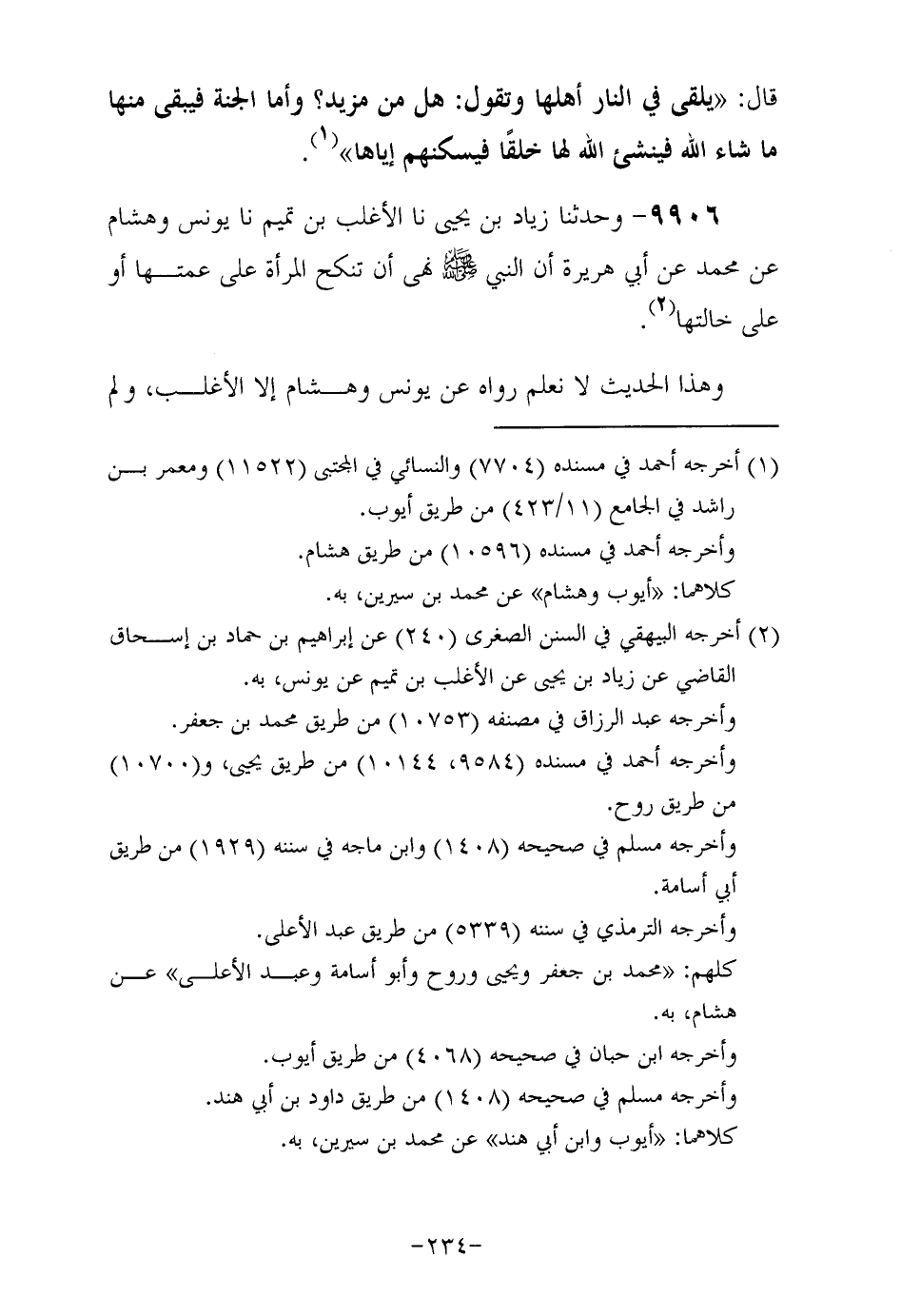 9906- وحَدَّثَنا زياد بن يحيى , حَدَّثَنا الأغلب بن تميم , حَدَّثَنا يونس وهشام , عن مُحَمَّد , عَنْ أَبِي هُرَيْرَةَ رَضِيَ اللهُ عَنْهُ , أَنَّ النَّبِيَّ صَلَّى اللهُ عَلَيْهِ وَسَلَّمَ نَهَى أَنْ تُنْكَحَ الْمَرْأَةُ عَلَى عمتها أو على خَالَتِهَا.
