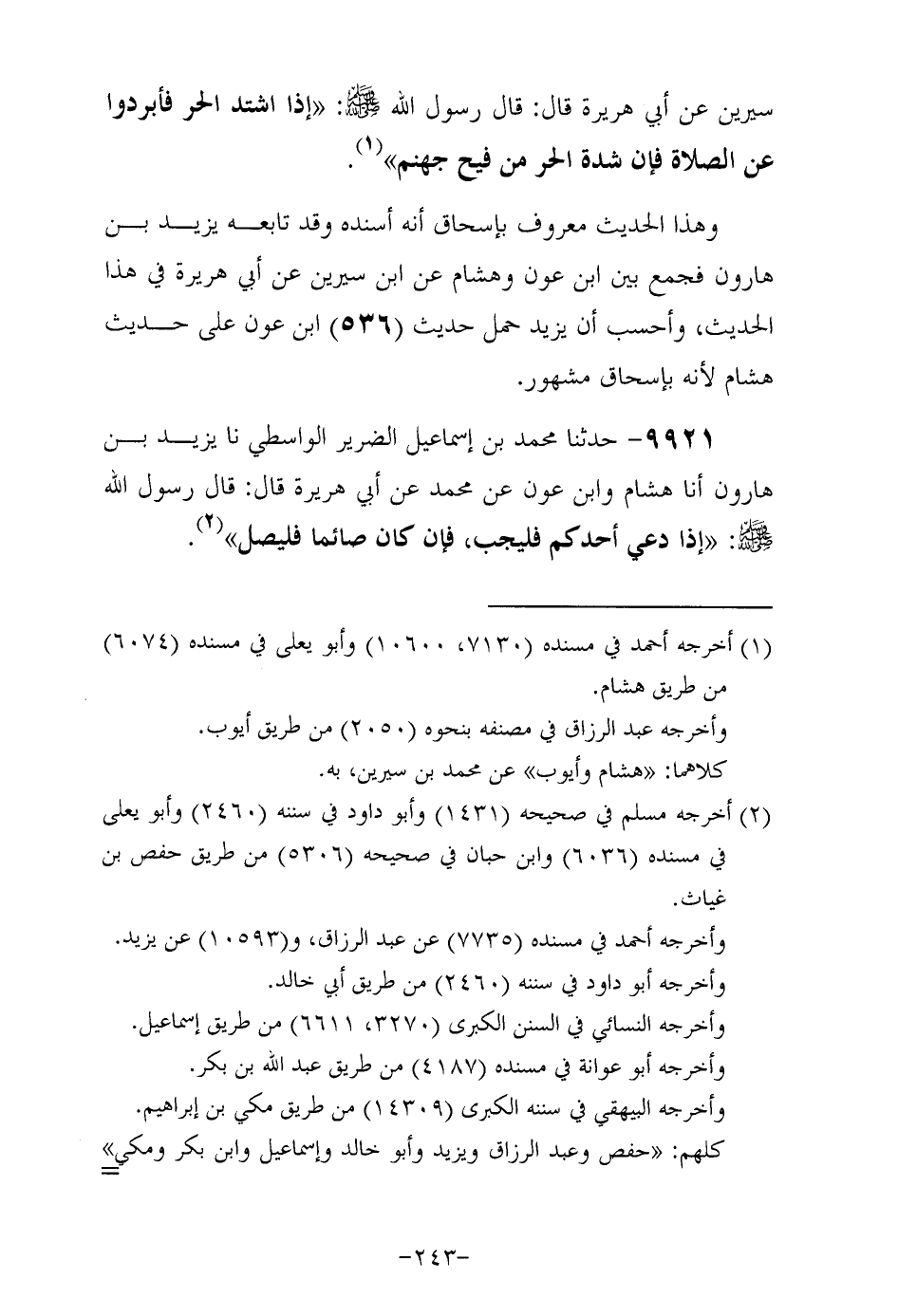 9921- حَدَّثَنا مُحَمَّد بن إسماعيل الضرير الواسطيّ , حَدَّثَنا يَزِيد بن هارون , أَخْبَرنَا هشام وابن عون , عن مُحَمَّد , عَنْ أَبِي هُرَيْرَةَ رَضِيَ اللهُ عَنْهُ , قَالَ: قَالَ رَسُولُ اللهِ صَلَّى اللهُ عَلَيْهِ وَسَلَّمَ: إذا دعي أحدكم فليجب فإن كان صائما فليصل.
