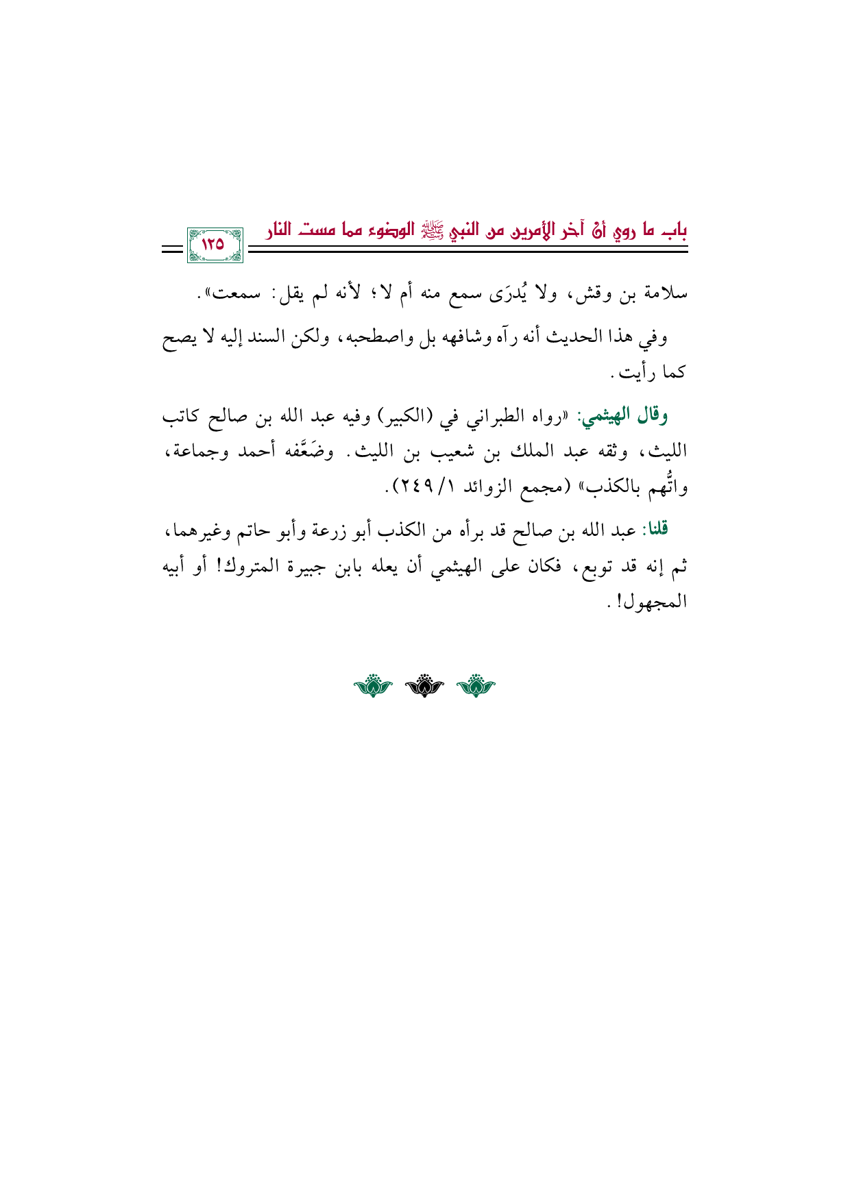 قلنا: عبد الله بن صالح قد برأه من الكذب أبو زرعة وأبو حاتم وغيرهما، ثم إنه قد توبع، فكان على الهيثمي أن يعله بابن جبيرة المتروك! أو أبيه المجهول! .
