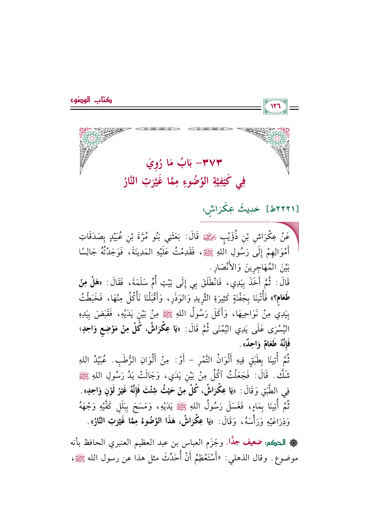 ٣٧٣ - بَابُ مَا رُوِيَ فِي كَيْفِيَّةِ الوُضُوءِ مِمَّا غَيَّرَتِ النَّارُ