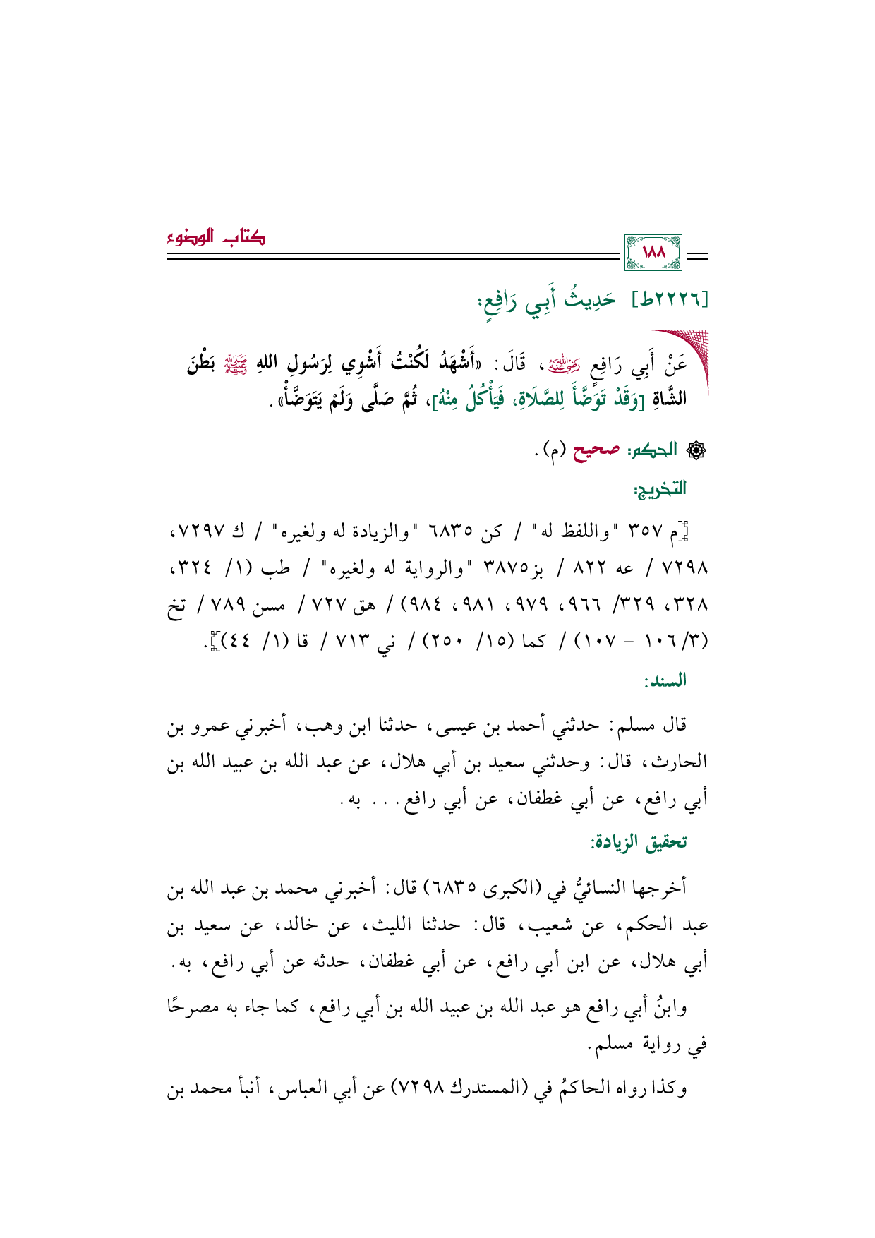 قال مسلم: حدثني أحمد بن عيسى، حدثنا ابن وهب، أخبرني عمرو بن الحارث، قال: وحدثني سعيد بن أبي هلال، عن عبد الله بن عبيد الله بن أبي رافع، عن أبي غطفان، عن أبي رافع ... به.