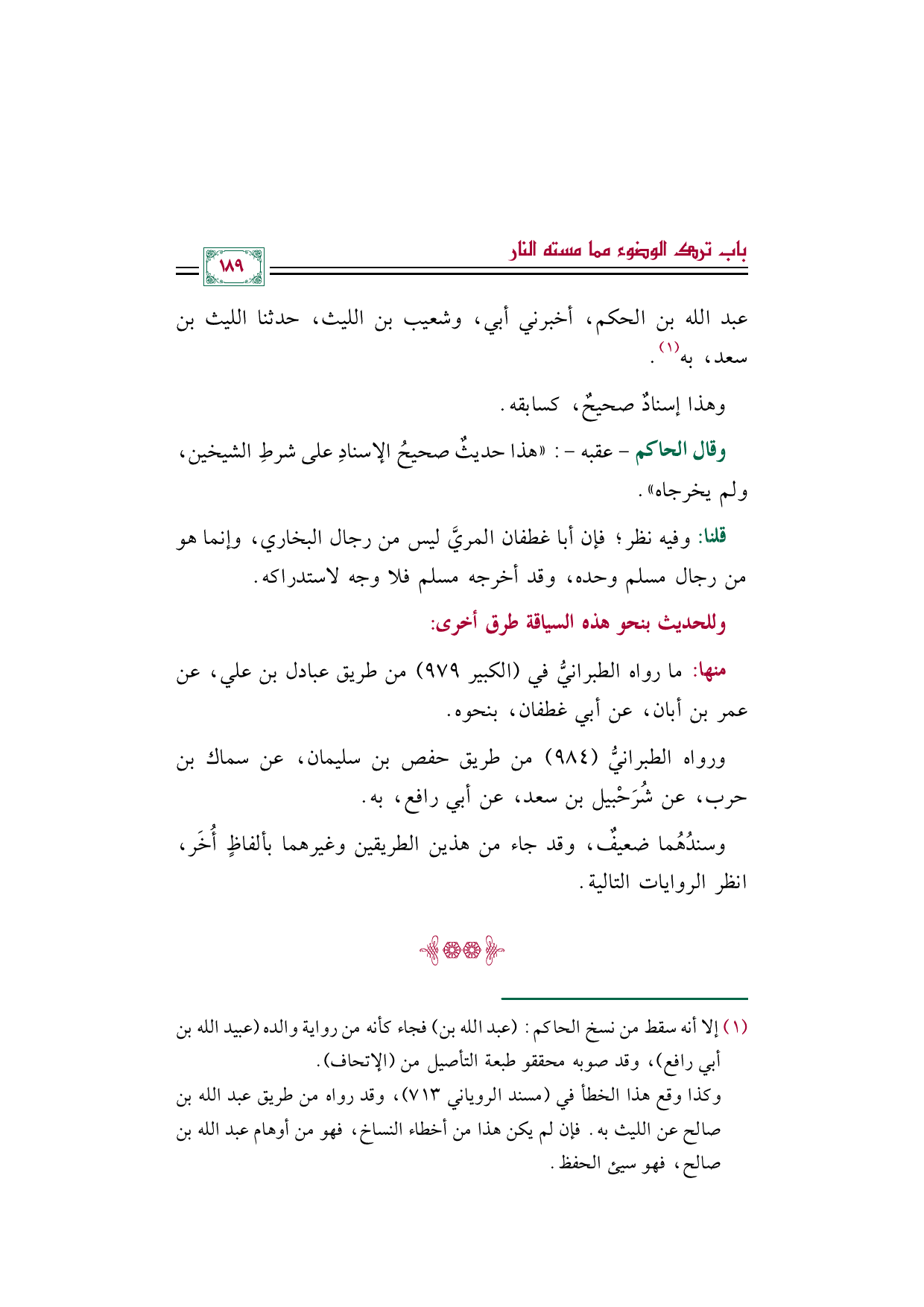 (¬١) إلا أنه سقط من نسخ الحاكم: (عبد الله بن) فجاء كأنه من رواية والده (عبيد الله بن أبي رافع)، وقد صوبه محققو طبعة التأصيل من (الإتحاف).