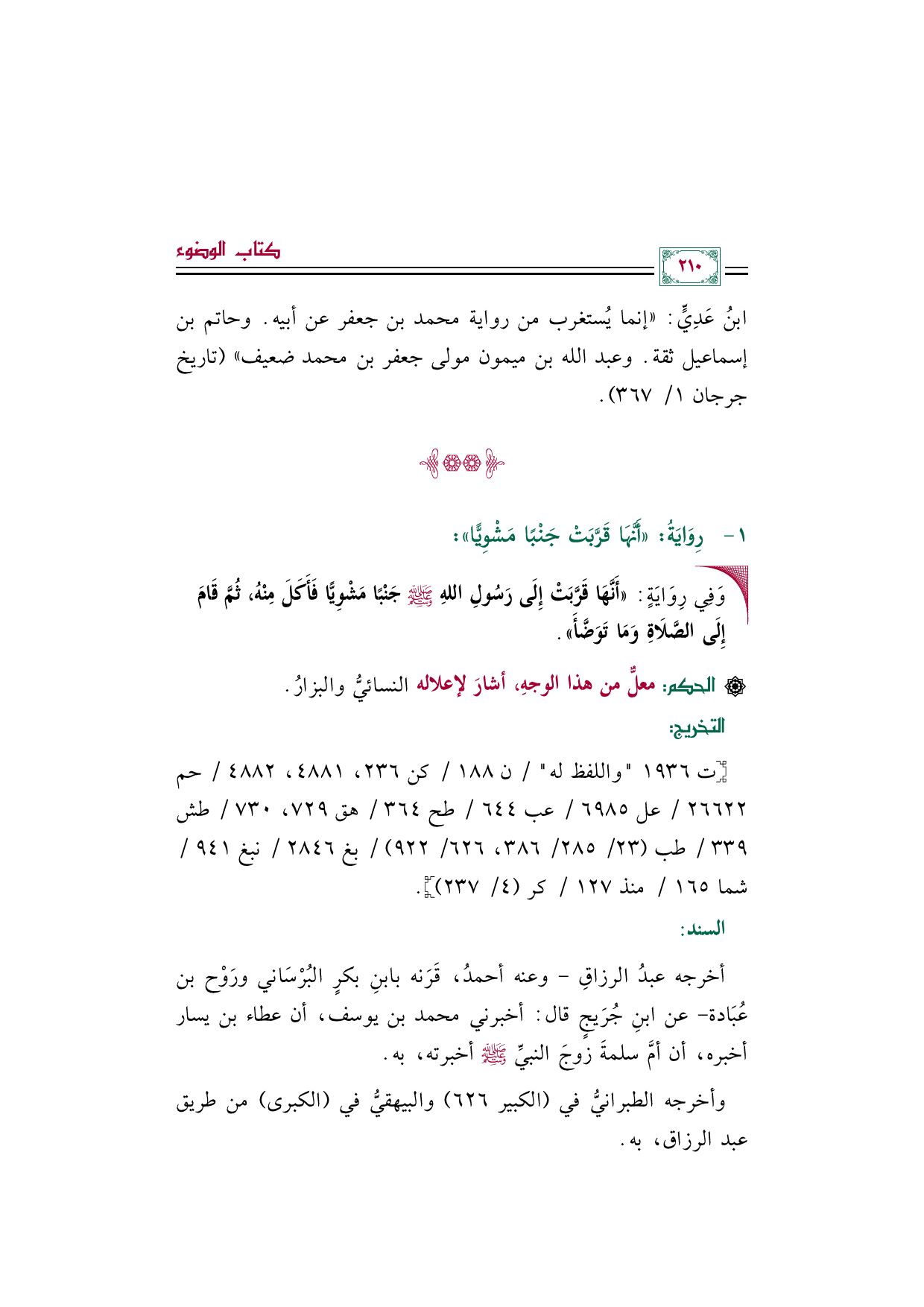 أخرجه عبدُ الرزاقِ -وعنه أحمدُ، قَرَنه بابنِ بكرٍ البُرْسَاني ورَوْح بن عُبَادة- عن ابنِ جُرَيجٍ قال: أخبرني محمد بن يوسف، أن عطاء بن يسار أخبره، أن أمَّ سلمةَ زوجَ النبيِّ صلى الله عليه وسلم أخبرته، به.