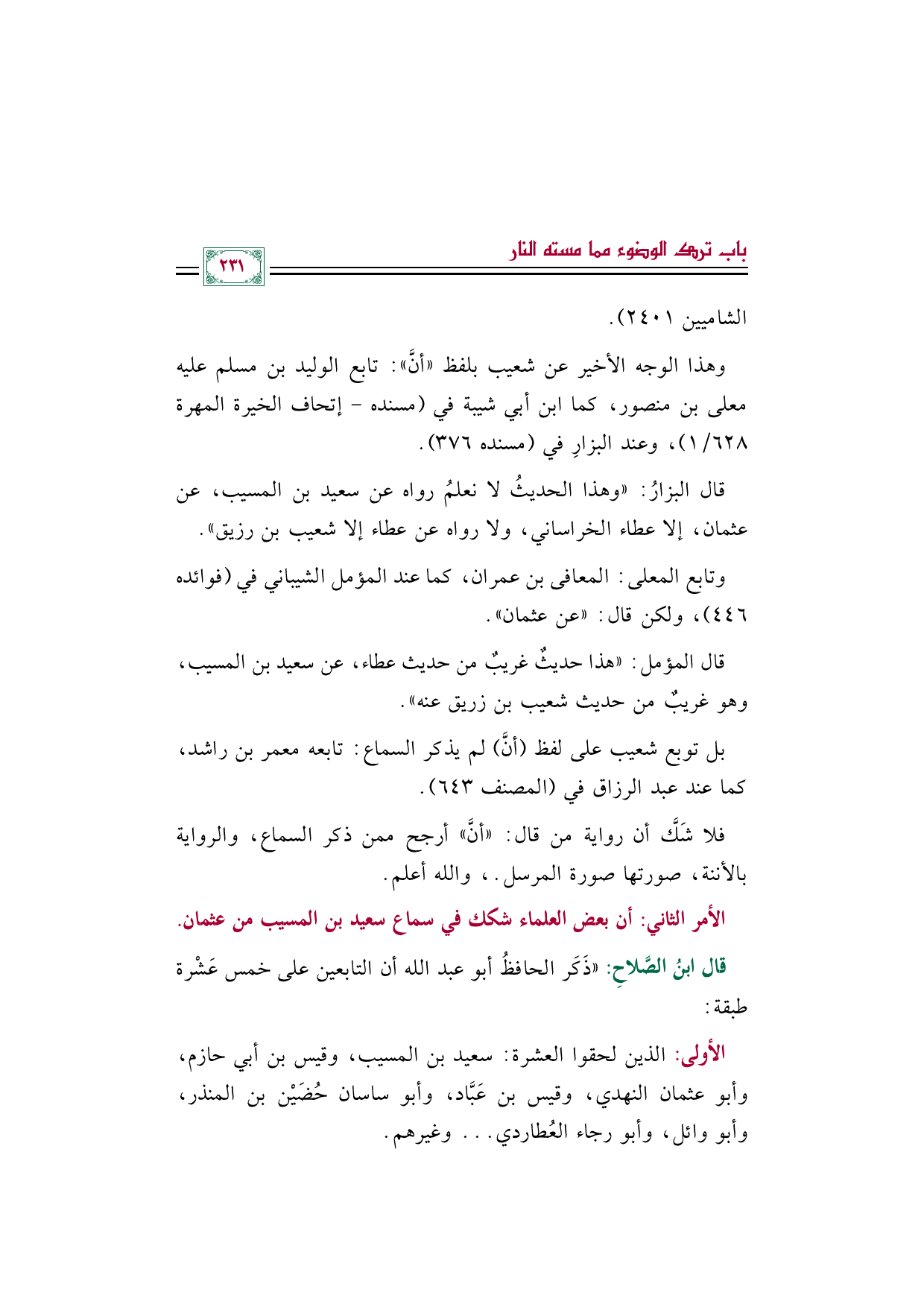 الأمر الثاني: أن بعض العلماء شكك في سماع سعيد بن المسيب من عثمان.