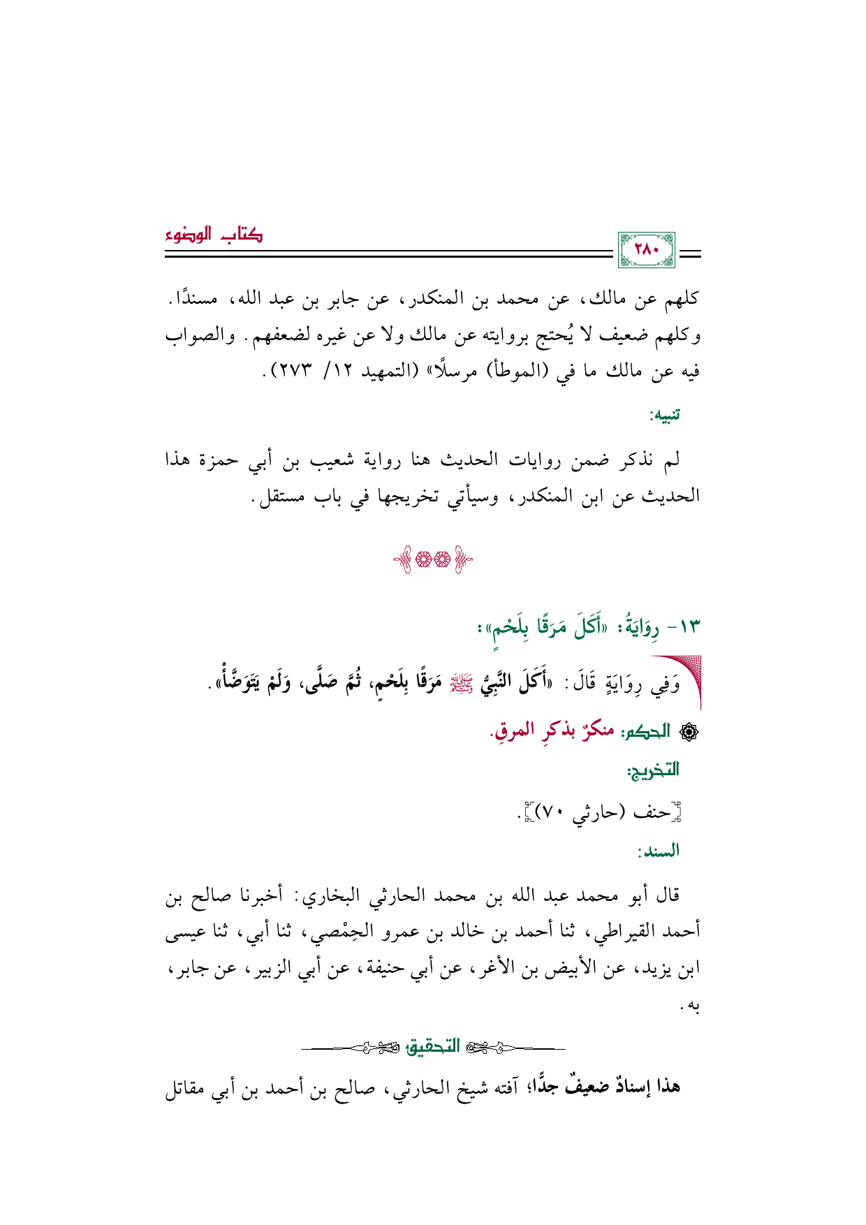 لم نذكر ضمن روايات الحديث هنا رواية شعيب بن أبي حمزة هذا الحديث عن ابن المنكدر، وسيأتي تخريجها في باب مستقل.