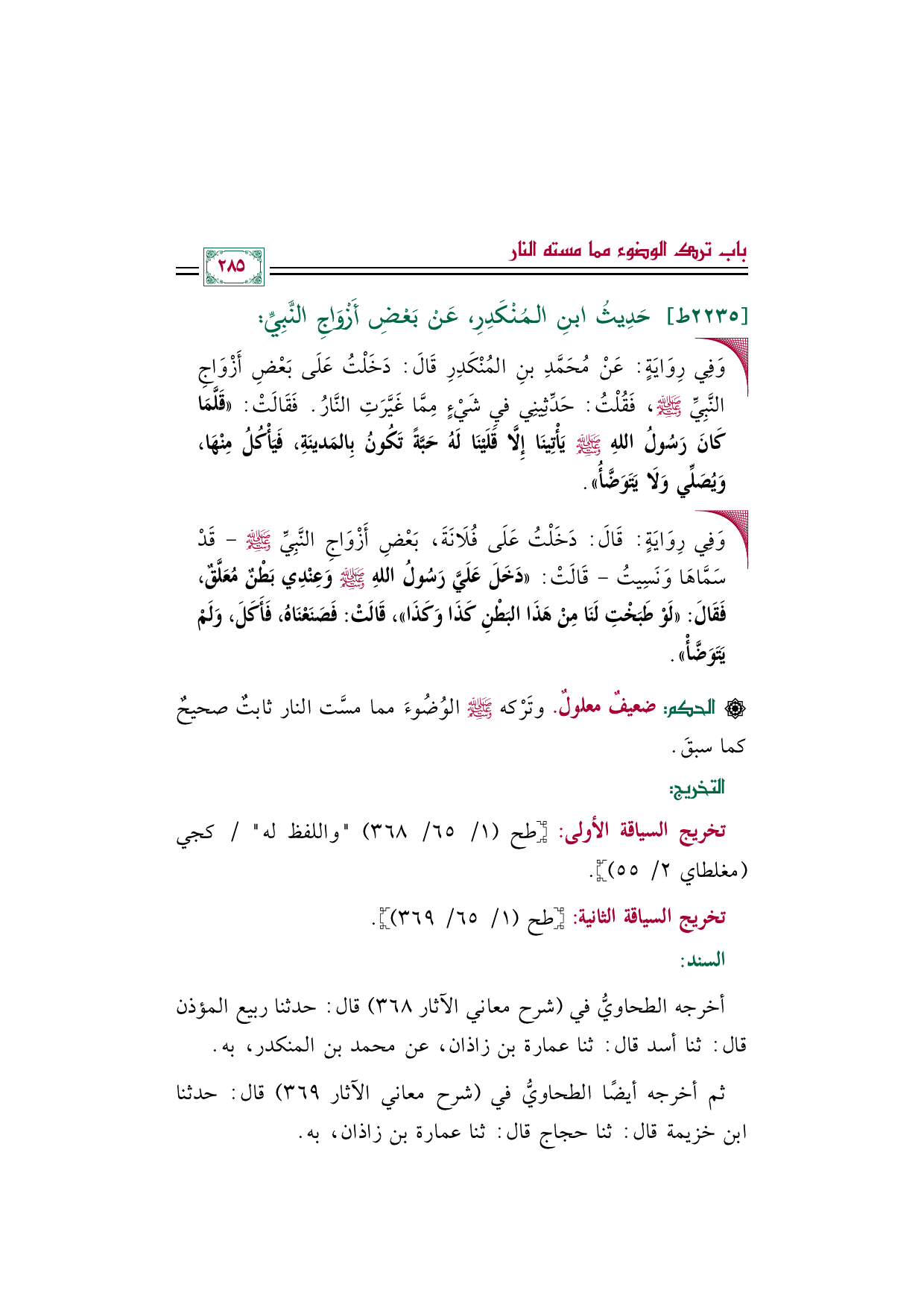 ٢٢٣٥ - حَدِيثُ ابنِ المُنْكَدِرِ، عَنْ بَعْضِ أَزْوَاجِ النَّبِيِّ