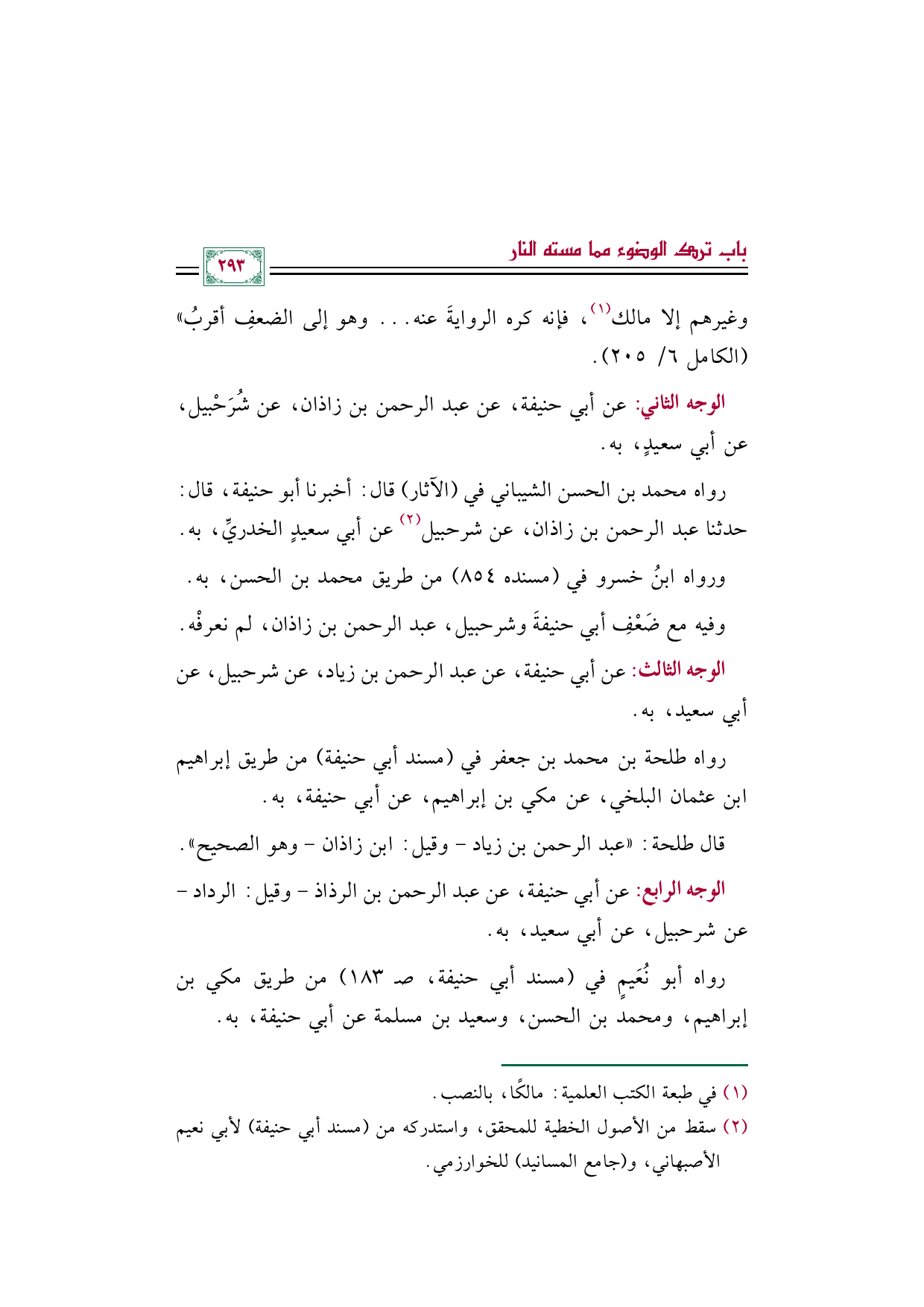 (¬٢) سقط من الأصول الخطية للمحقق، واستدركه من (مسند أبي حنيفة) لأبي نعيم الأصبهاني، و (جامع المسانيد) للخوارزمي.