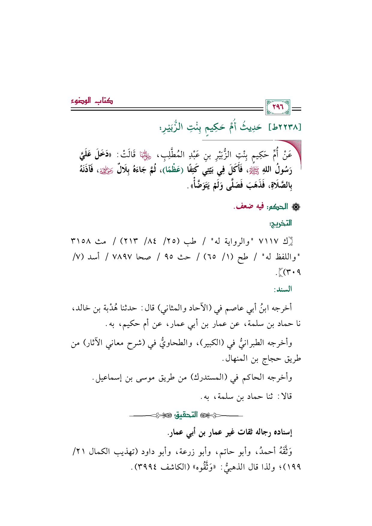 أخرجه ابنُ أبي عاصم في (الآحاد والمثاني) قال: حدثنا هُدْبة بن خالد، نا حماد بن سلمة، عن عمار بن أبي عمار، عن أم حكيم، به.