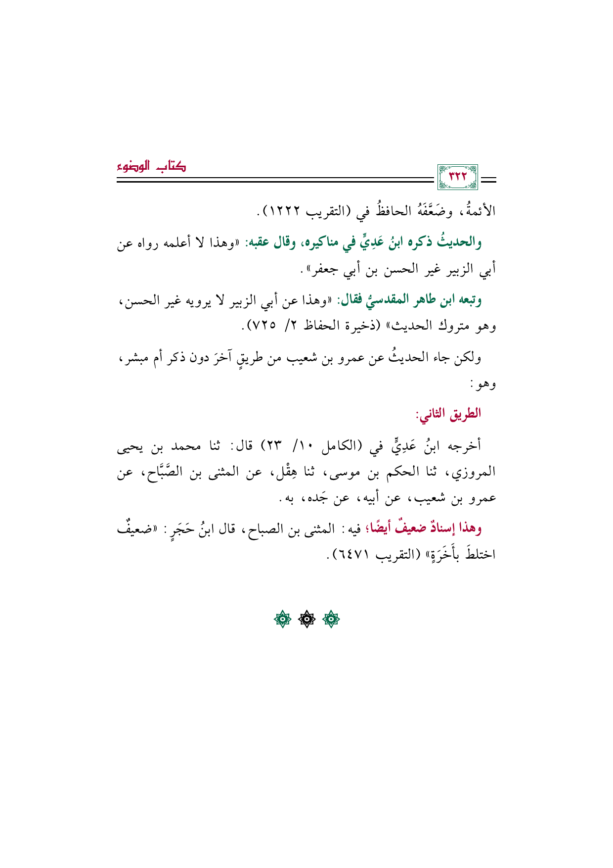 الأئمةُ، وضَعَّفَهُ الحافظُ في (التقريب ١٢٢٢).