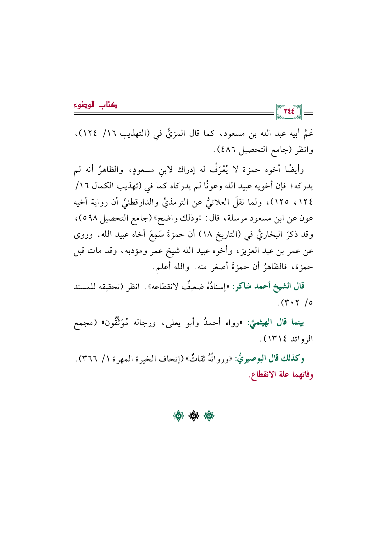 وأيضًا أخوه حمزة لا يُعْرَفُ له إدراك لابنِ مسعودٍ، والظاهرُ أنه لم يدركه؛ فإن أخويه عبيد الله وعونًا لم يدركاه كما في (تهذيب الكمال ١٦/ ١٢٤، ١٢٥)، ولما نقلَ العلائيُّ عن الترمذيِّ والدارقطنيِّ أن رواية أخيه عون عن ابن مسعود مرسلة، قال: "وذلك واضح" (جامع التحصيل ٥٩٨)، وقد ذكرَ البخاريُّ في (التاريخ ١٨) أن حمزةَ سَمِعَ أخاه عبيد الله، وروى عن عمر بن عبد العزيز، وأخوه عبيد الله شيخ عمر ومؤدبه، وقد مات قبل حمزة، فالظاهرُ أن حمزةَ أصغر منه. والله أعلم.