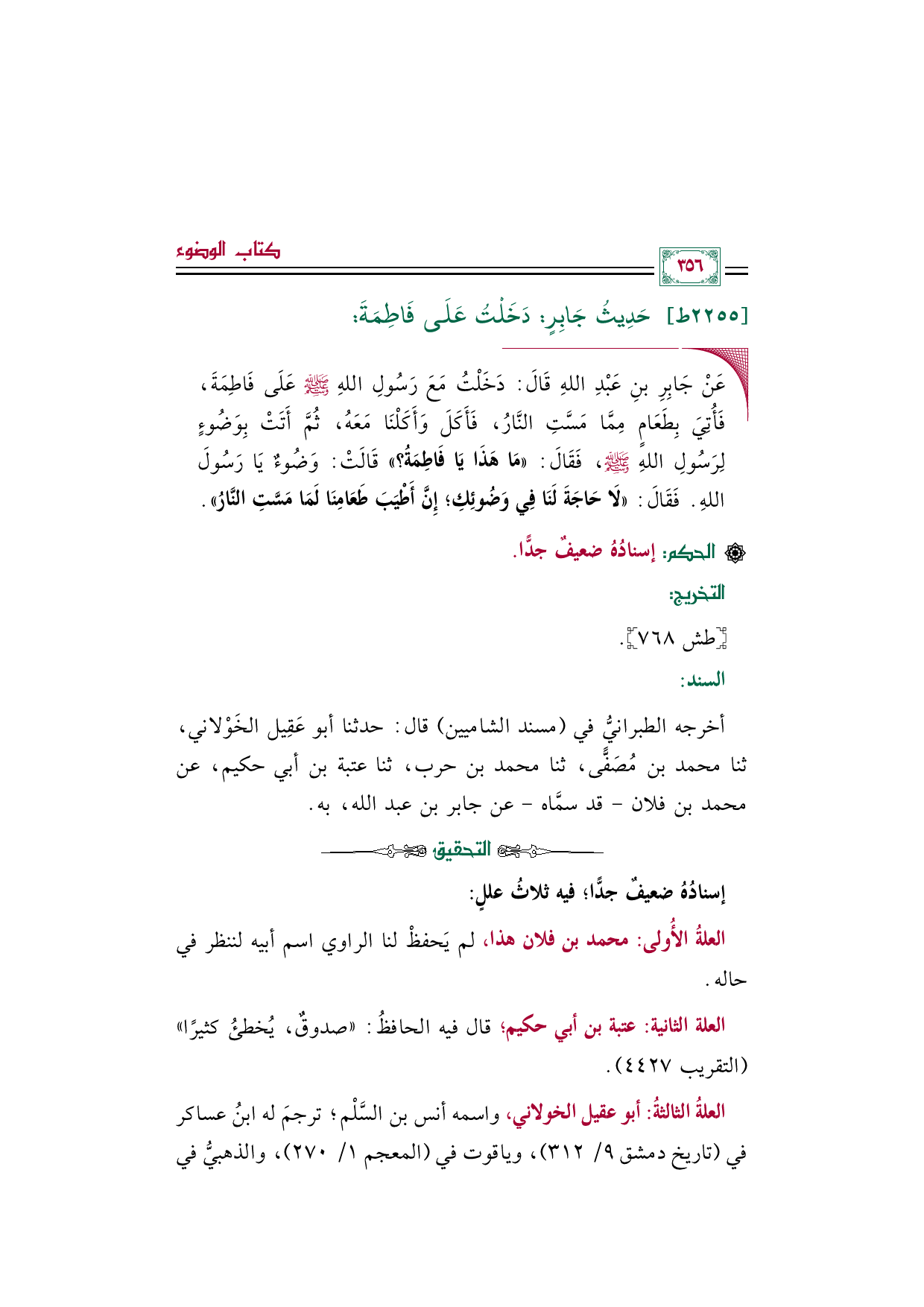٢٢٥٥ - حَدِيثُ جَابِرٍ: دَخَلْتُ عَلَى فَاطِمَةَ