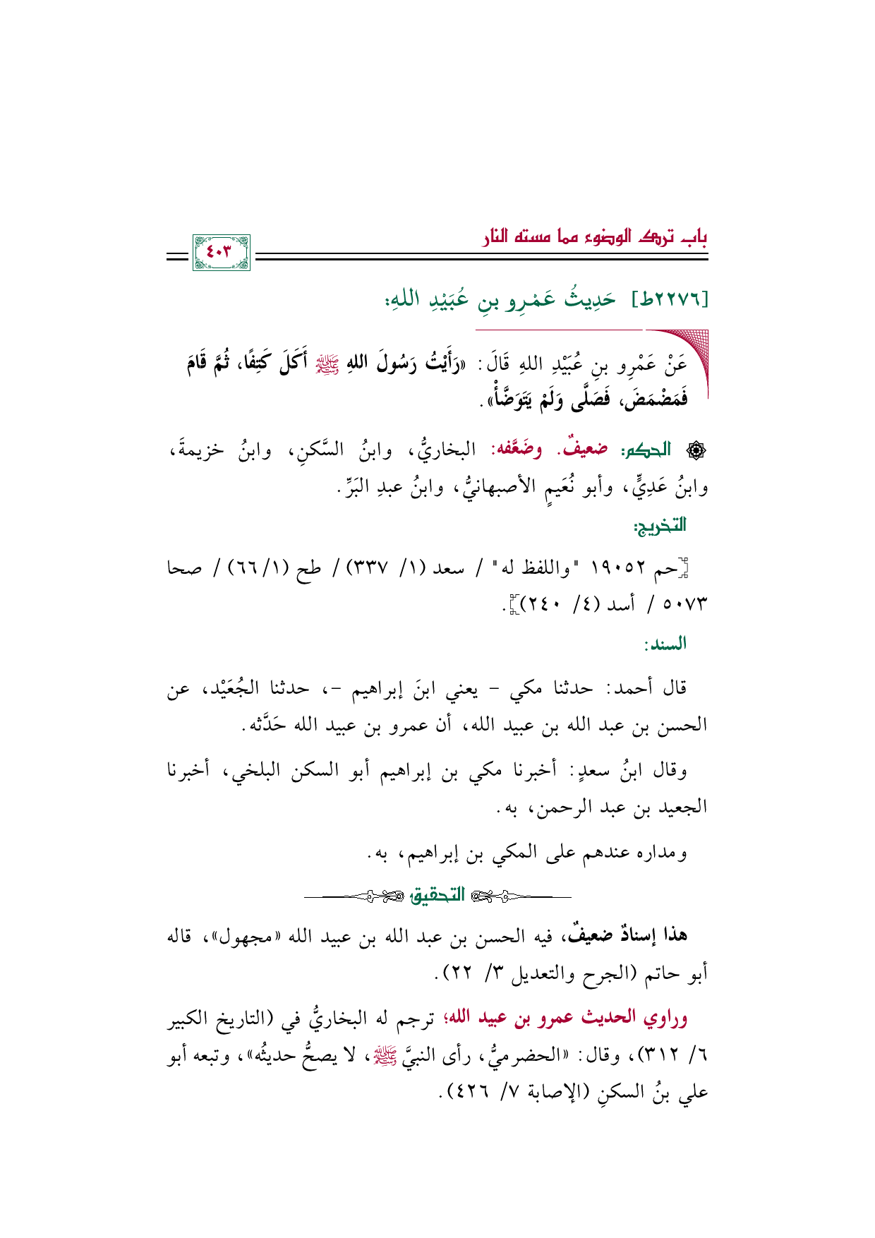 قال أحمد: حدثنا مكي -يعني ابنَ إبراهيم-، حدثنا الجُعَيْد، عن الحسن بن عبد الله بن عبيد الله، أن عمرو بن عبيد الله حَدَّثه.