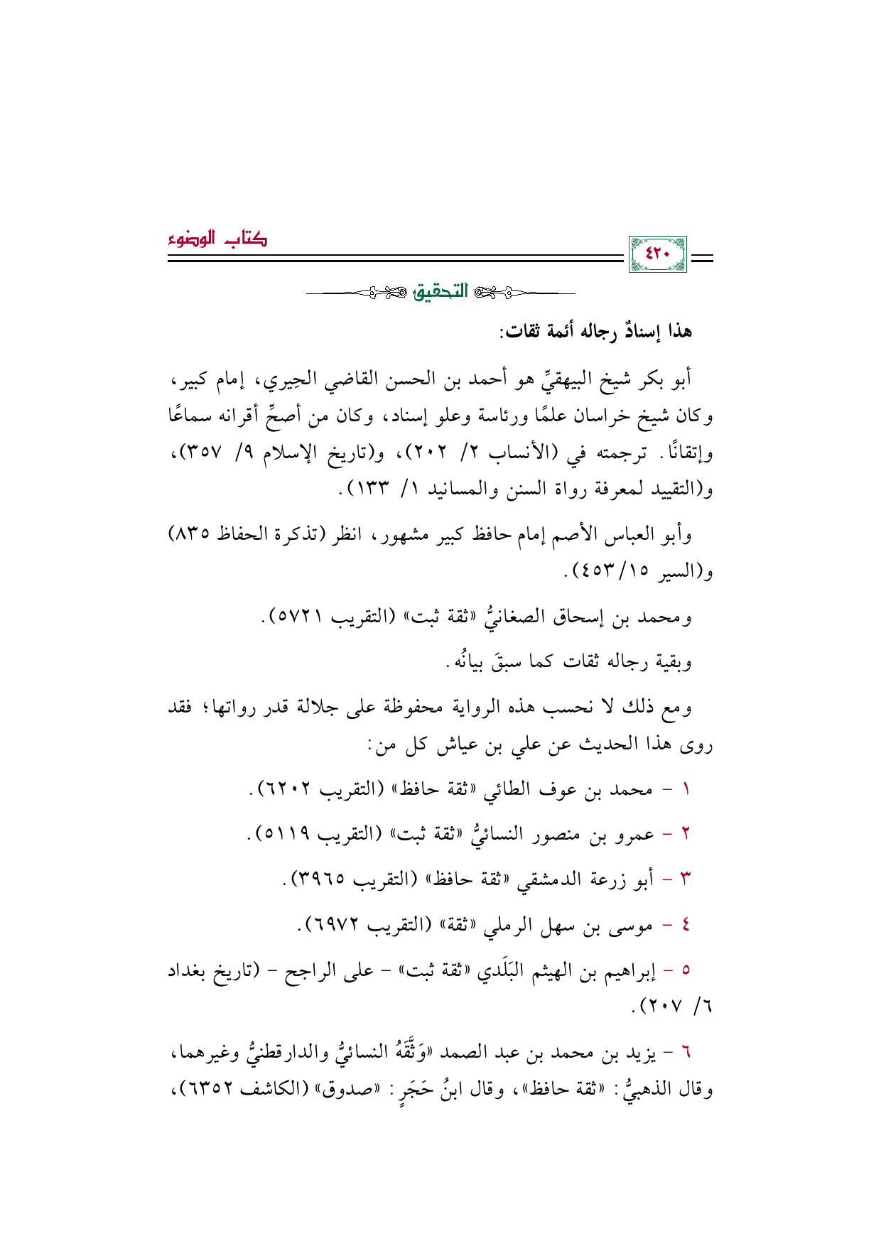 ٦ - يزيد بن محمد بن عبد الصمد "وَثَّقَهُ النسائيُّ والدارقطنيُّ وغيرهما، وقال الذهبيُّ: "ثقة حافظ"، وقال ابنُ حَجَرٍ: "صدوق" (الكاشف ٦٣٥٢)،