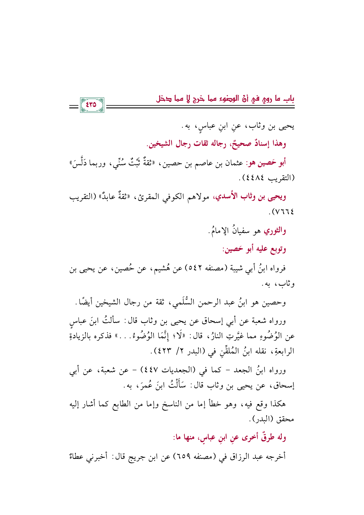 فرواه ابنُ أبي شيبة (مصنفه ٥٤٢) عن هُشيم، عن حُصين، عن يحيى بن وثاب، به.