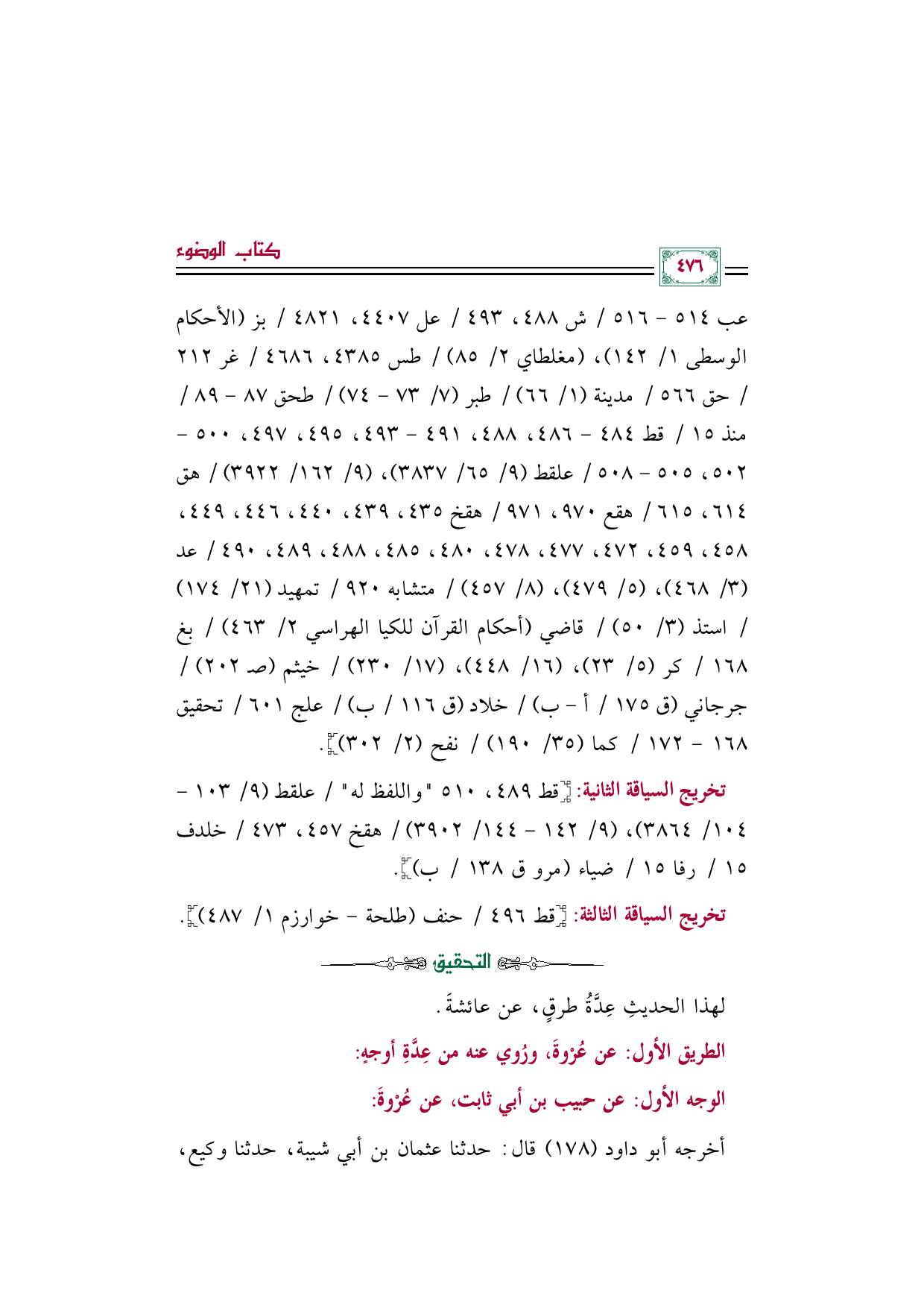 الوجه الأول: عن حبيب بن أبي ثابت، عن عُرْوةَ: