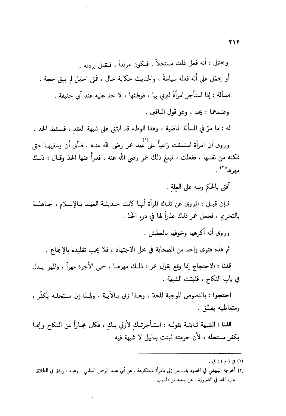 وَيحْتَمل أَنه فعل ذَلِك مستحلا فَيكون مُرْتَدا فَيقْتل بردته أَو يحمل على أَنه فعله سياسة والْحَدِيث حِكَايَة حَال فَمَتَى احْتمل لم يبْق حجَّة مَسْأَلَة إِذا اسْتَأْجر امْرَأَة ليزني بهَا فَوَطِئَهَا لَا حد عَلَيْهِ عِنْد أبي حنيفَة وَعِنْدَهُمَا يحد وَهُوَ قَول البَاقِينَ لَهُ مَا مر فِي الْمَسْأَلَة الْمَاضِيَة وَهَذَا الْوَطْء قد ابتني على شُبْهَة العقد فَيسْقط الْحَد