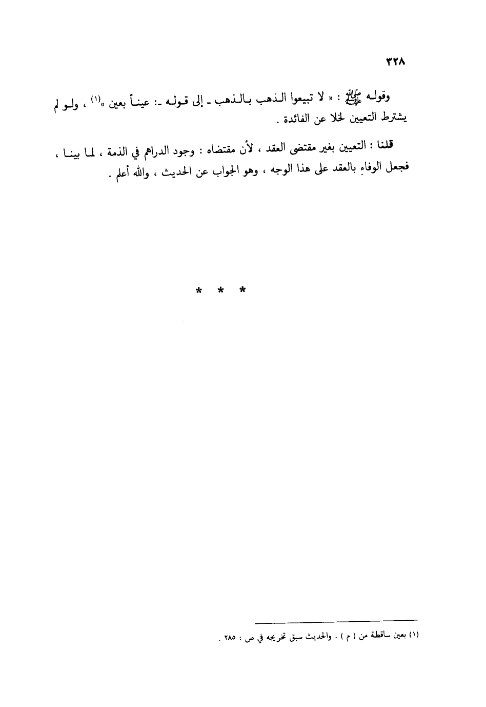 وَقَوله صلى الله عَلَيْهِ وَسلم لَا تَبِيعُوا الذَّهَب بِالذَّهَب إِلَى قَوْله عينا بِعَين وَلَو لم يشْتَرط التَّعْيِين لخلا عَن الْفَائِدَة