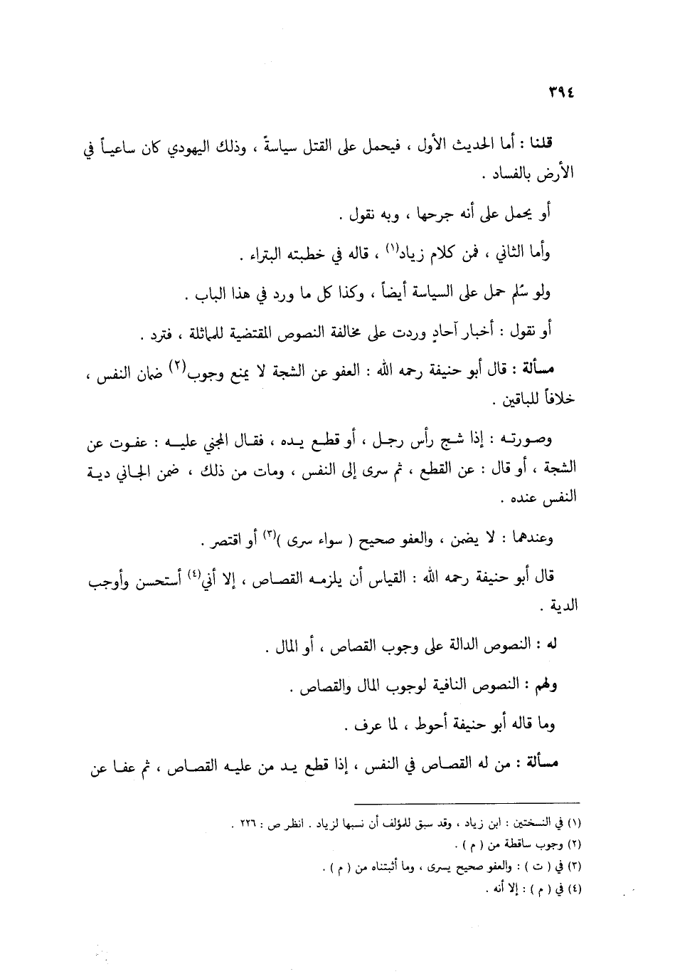قُلْنَا أما الحَدِيث الأول فَيحمل على الْقَتْل سياسة وَذَلِكَ الْيَهُودِيّ كَانَ ساعيا فِي الأَرْض بِالْفَسَادِ أَو يحمل على أَنه جرحها وَبِه نقُول وَأما الثَّانِي فَمن كَلَام زِيَاد قَالَه فِي خطبَته البتراء وَلَو سلم حمل على السياسة أَيْضا وَكَذَا كل مَا ورد فِي هَذَا الْبَاب أَو نقُول أَخْبَار آحَاد وَردت على مُخَالفَة النُّصُوص الْمُقْتَضِيَة للمماثلة فَترد