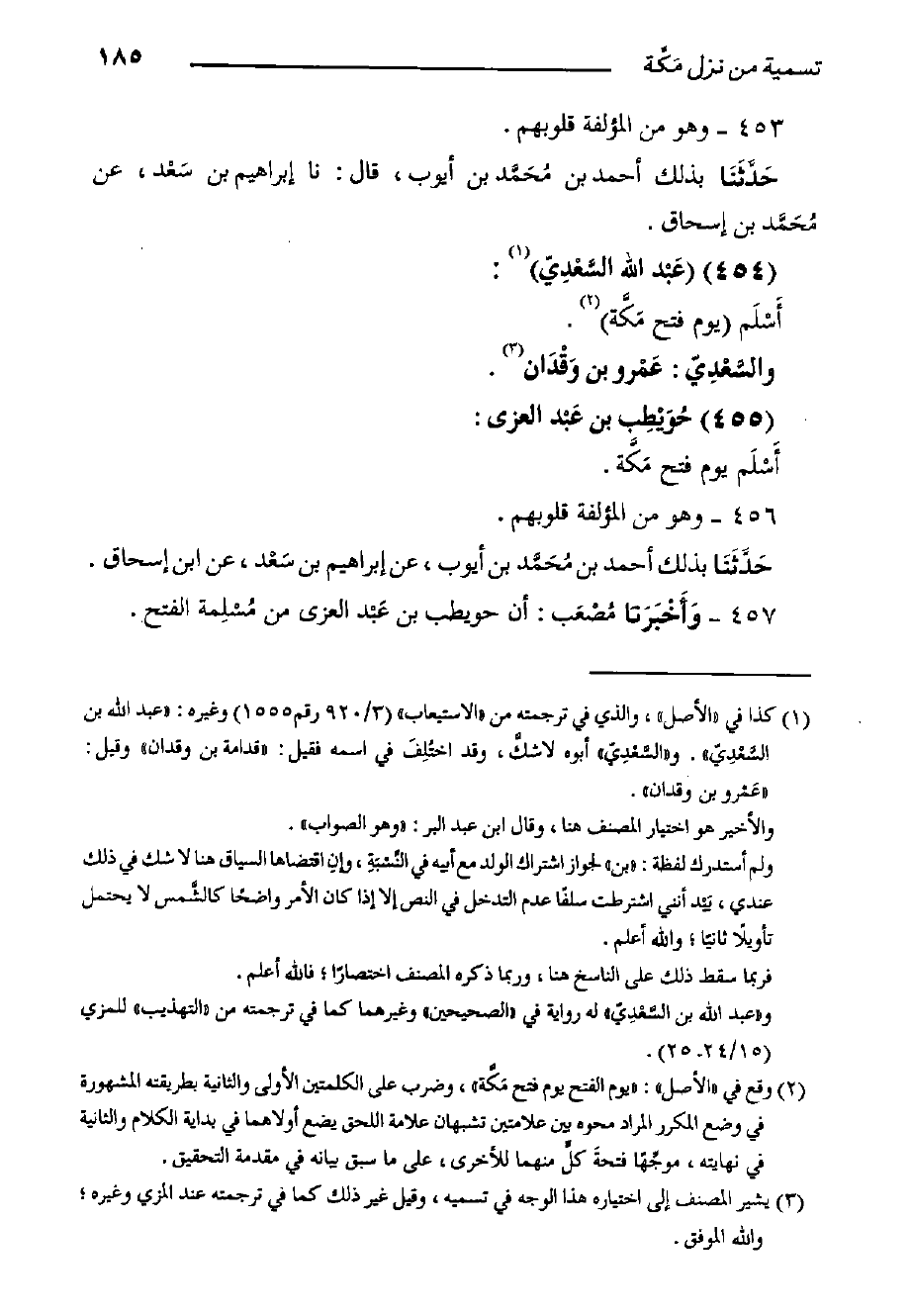 457 - وَأَخْبَرَنَا مُصْعَب: أن حويطب بْن عَبْد العزى من مُسْلِمة الفتح