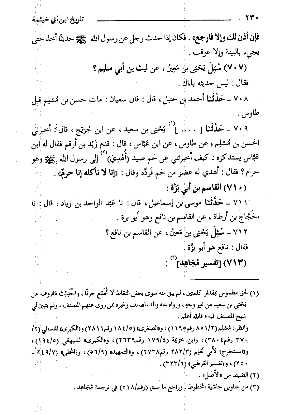 712 - سُئِلَ يَحْيَى بْن مَعِيْن، عَنْ القاسم بن نافع؟ فقال: حدثنافع هو أَبُو بزَّة.