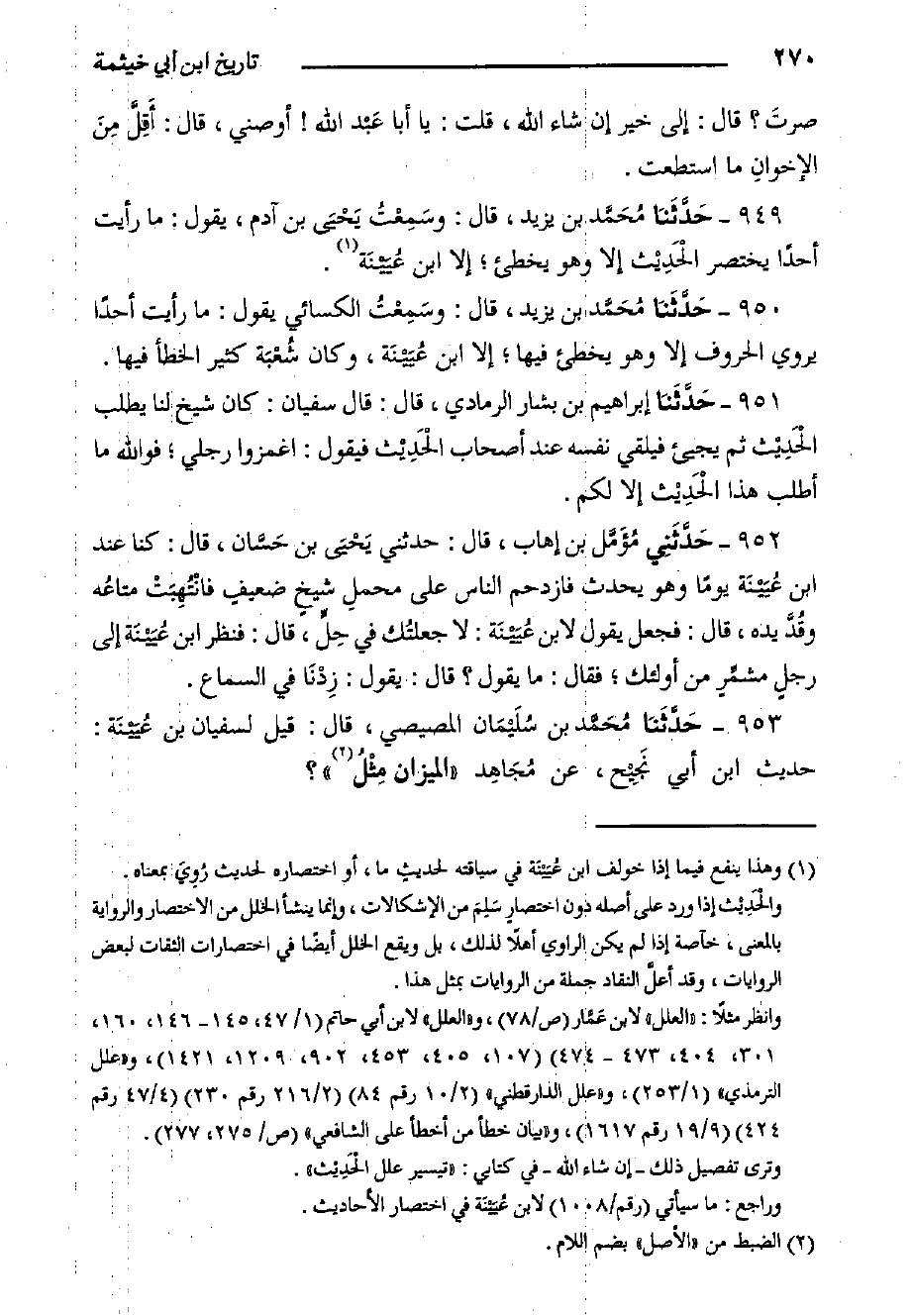 949- حَدَّثَنا مُحَمَّد بْن يَزِيدَ، قَالَ: وسَمِعْتُ يَحْيَى بْن آدم، يَقُولُ: ما رأيت أحدا يختصر الْحَدِيْث إِلا وهو يخطئ؛ إِلا ابن عُيَيْنَة.