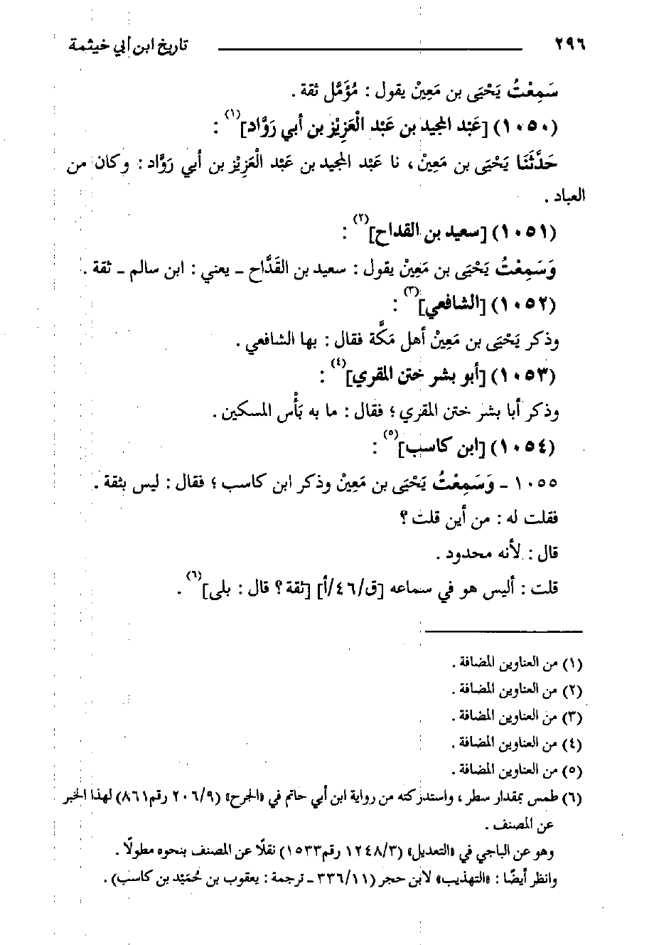 1055 - وَسَمِعْتُ يَحْيَى بْن مَعِيْن وذكر ابن كاسب؛ فَقَالَ: ليس بثقة.