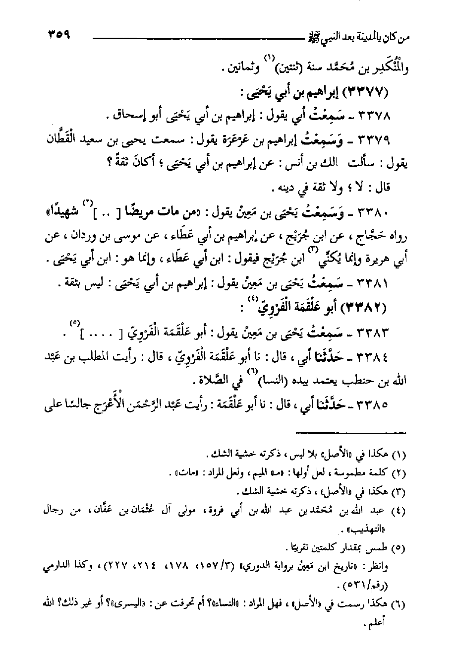 3383- سَمِعْتُ يَحْيَى بْن مَعِيْن يَقُولُ: أَبُو عَلْقَمَة الْفَرْوِيّ ... .