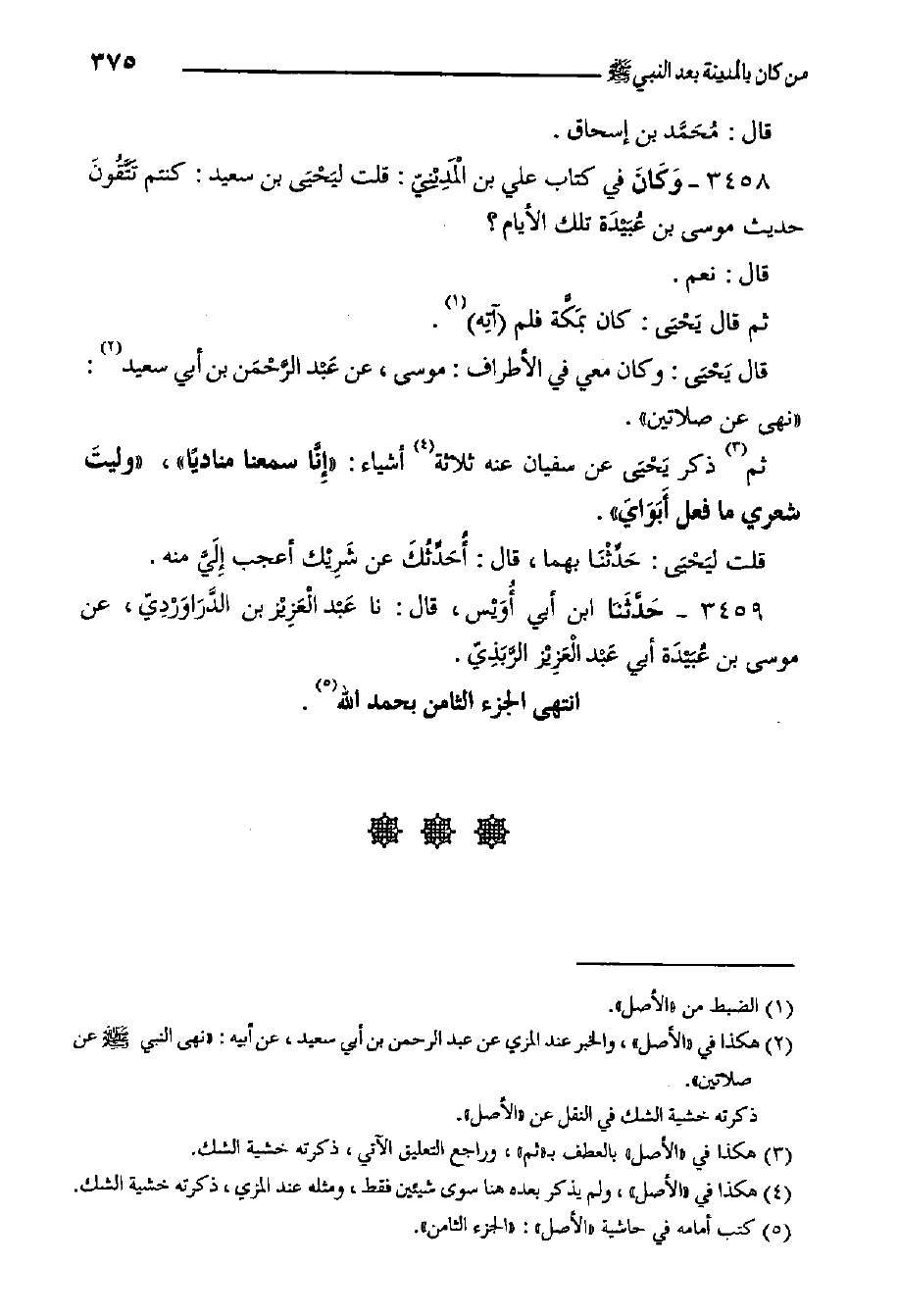 3458- وَكَانَ في كتاب علي بن الْمَدِيْنِيّ: قلت ليَحْيَى بن سعيد: كنتم تَتَّقُونَ حديث موسى بن عُبَيْدَة تلك الأيام؟ قَالَ: نعم، ثم قَالَ يَحْيَى: كان بمَكَّة فلم (آتِه.