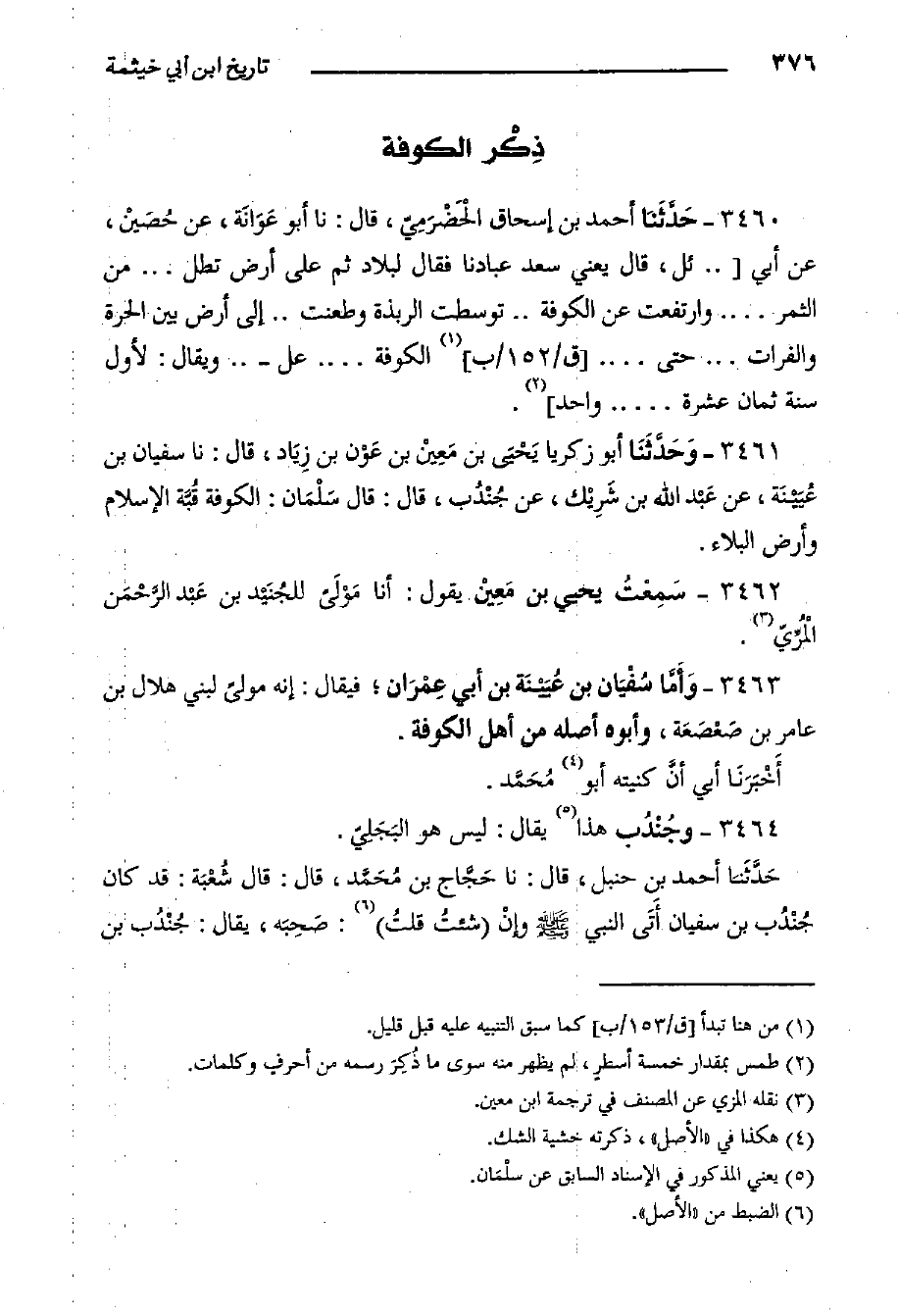 3461- وَحَدَّثَنَا أَبُو زَكَرِيَّا يَحْيَى بْنُ مَعِيْن بْنِ عَوْن بن زِيَاد، قال: حدثنا سفيان بن عُيَيْنَة، عن عَبْد اللَّهِ بْنِ شَرِيْك، عَنْ جُنْدَُب، قَالَ: قَالَ سَلْمَان: الْكُوفَةُ قُبَّة الإِسْلامِ وَأَرْضُ الْبَلاءِ.