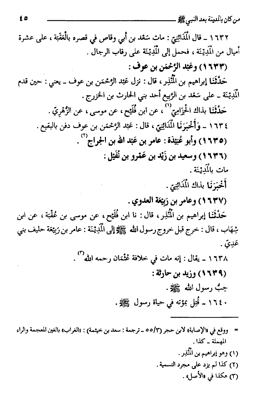 1634 - وَأَخْبَرَنَا الْمَدَائِنِيّ، قَالَ:عَبْد الرَّحْمَن بن عوف دفن بالبقيع.