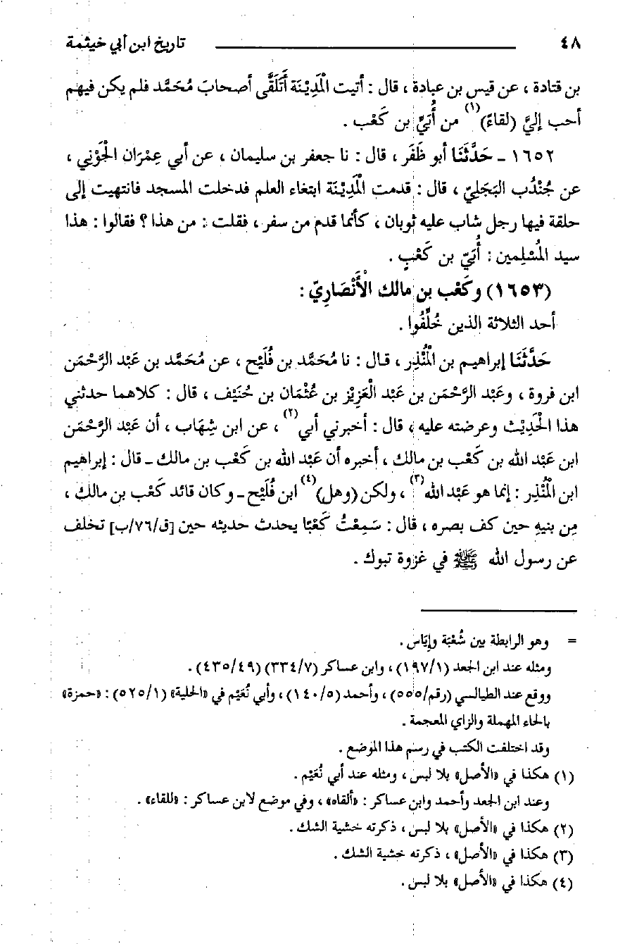 1653- وكَعْب بن مالك الأَنْصَارِيّ: