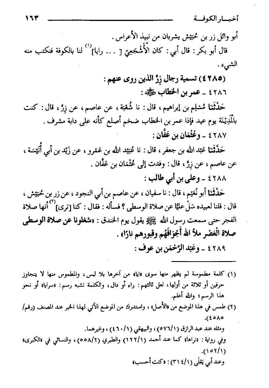 4285) تسمية رجال زِرٍّ الَّذِين روى عنهم: