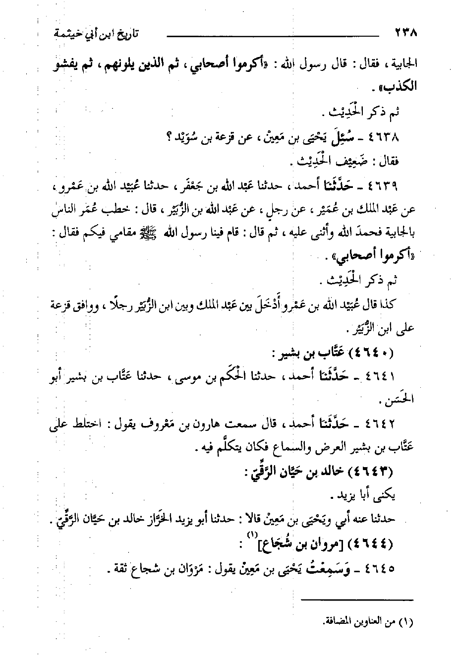 حَدَّثَنَا عنه أَبِي ويَحْيَى بْن مَعِيْن قَالا: حَدَّثَنَا أَبُو يزيد الخَرَّاز خالد بْن حَيَّان الرَّقِّيّ.