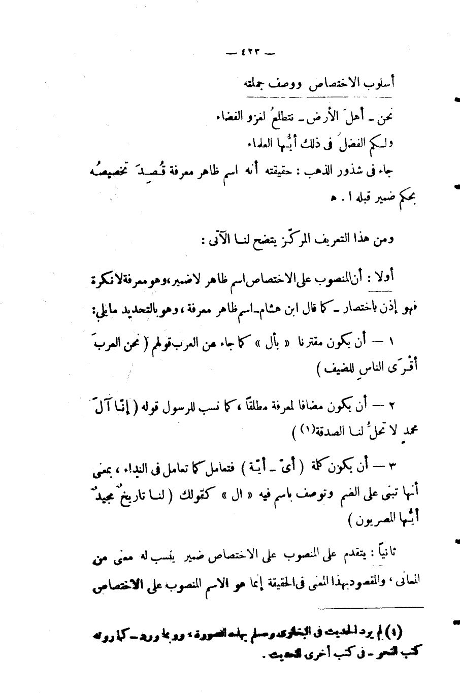 صفة اللمعان ونوعه، ويلاحظ أيضا أن "الهُدَى" في المثال الثاني قد أضيف إلى "النجاة" فبينت أيضا نوع الهدى وسمته، ويطلق على هذه الصورة اسم المفعول المطلق المبين للنوع، حيث يتضح المقصود منه بواسطة الوصف أو الإضافة غالبا.